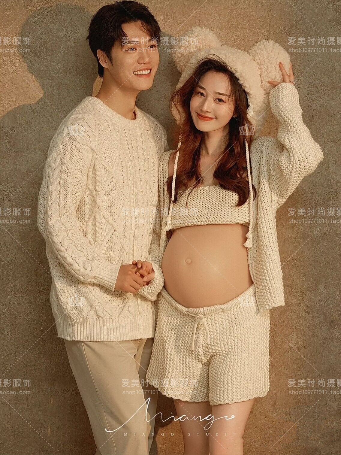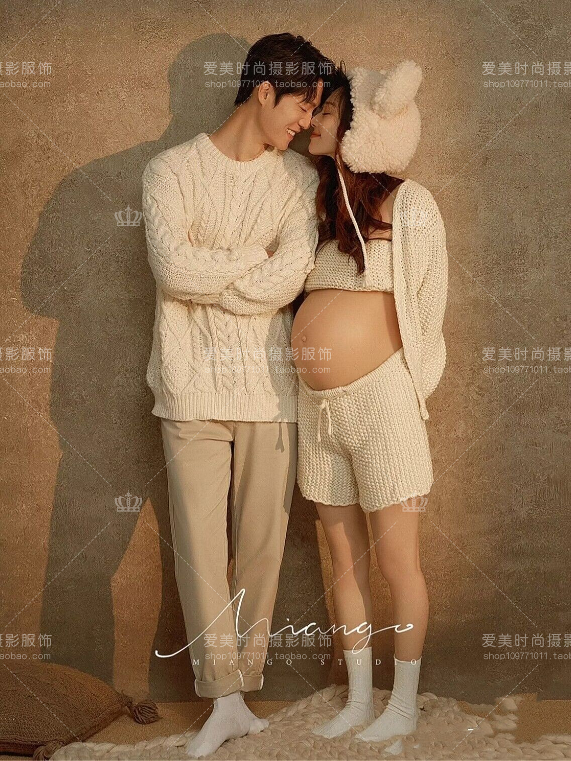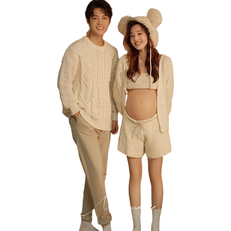 23 New Movie Houses Pregnant Women Photo Costumes Write Real Couple Pregnant Women Photos Rough Line Sweater Suits Cute Home Themed-Taobao