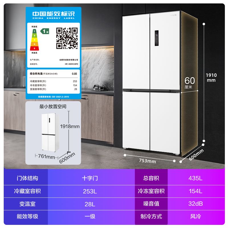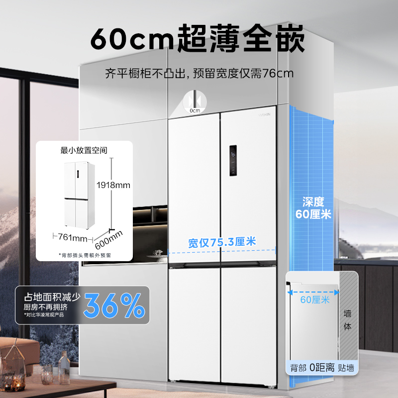 Ultra-thin Full-embedded] Hua Ling 456 Cross open four doors Full-embedded refrigerator Home White air-cooled Frost-Taobao