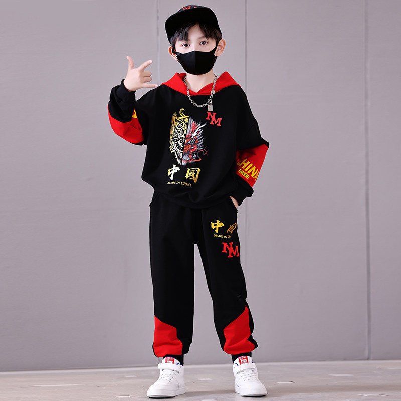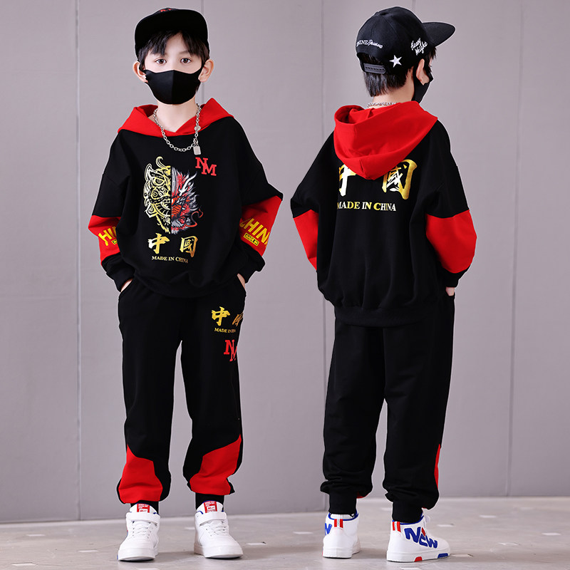 Boy suit plus suede autumn clothing winter dress New Year children's clothing long pants two sets 2023 CUHK children sportswear-Taobao