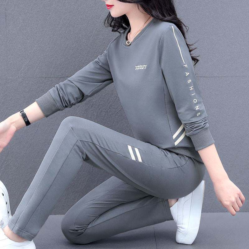Big Code Sports Suit Women Autumn 2023 New Middle Aged Mom Fitness Running Suit Sweatshirt Casual 0801q-Taobao