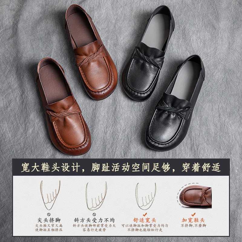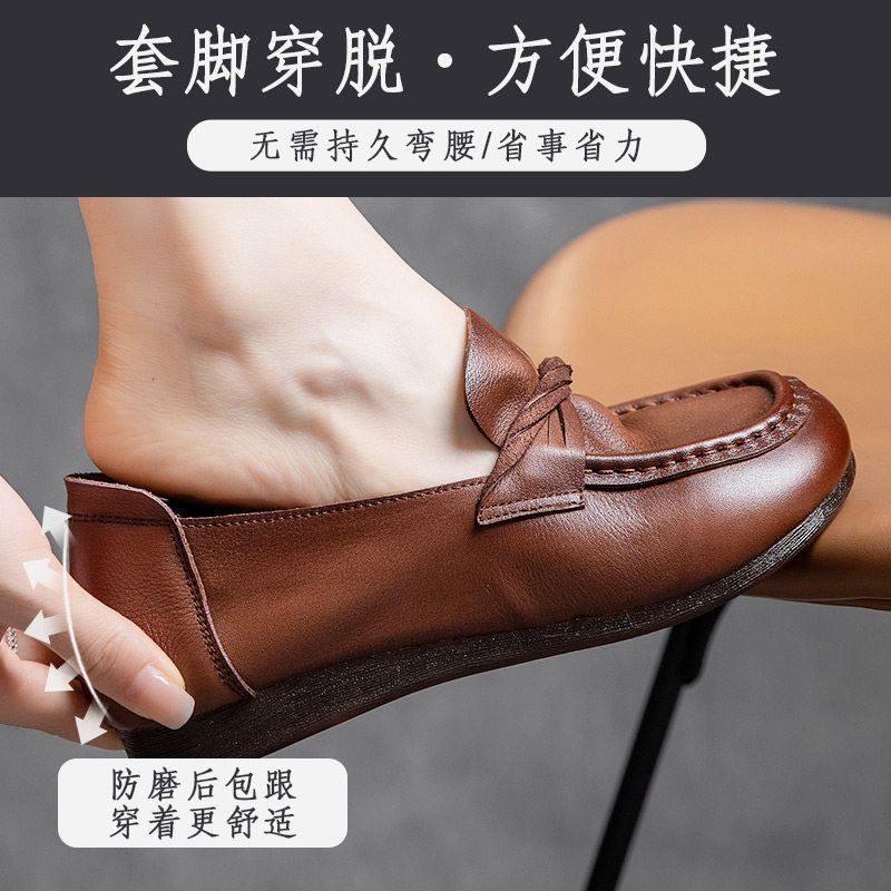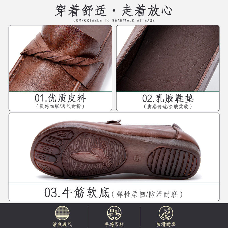 Genuine leather Levos shoes women 2023 new moms shoes soft-bottom sloth people in women's shoes mid-aged comfortable steak bottoms-Taobao