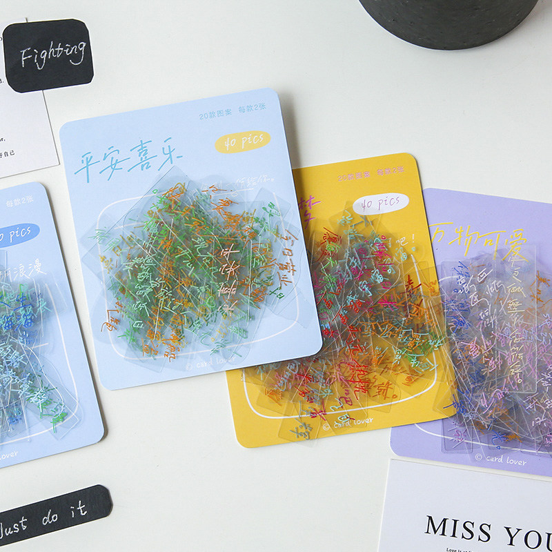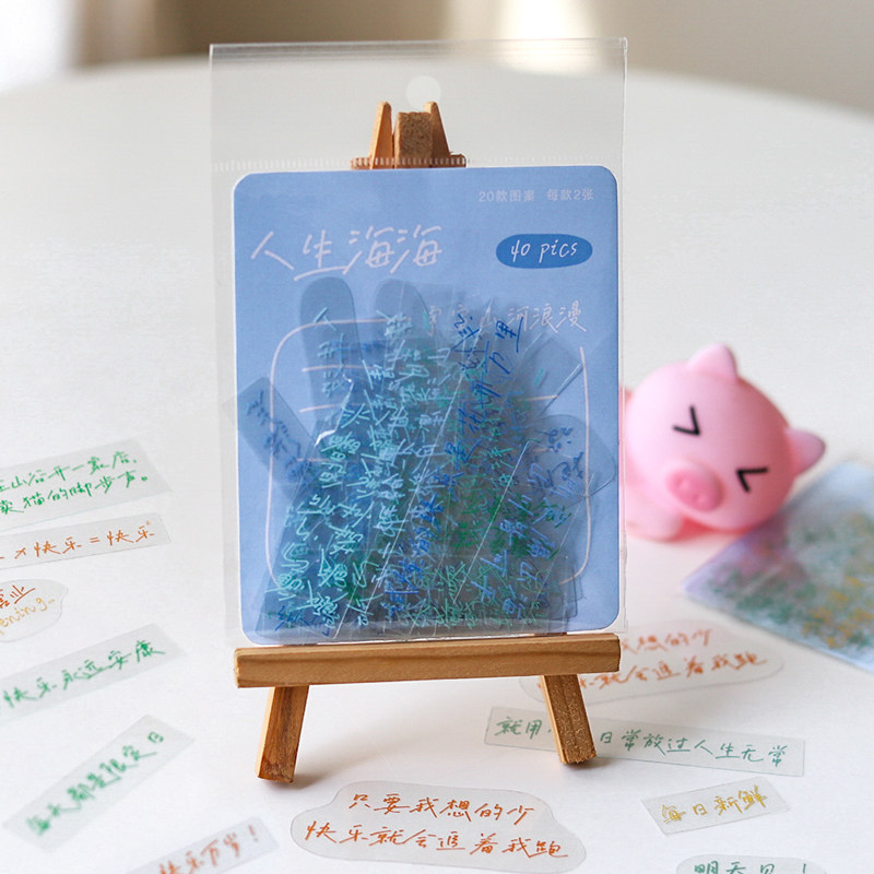 Transparent text sticker pet material transparent text sticker bag High face value Decorative Small Plot Case Water Glass Sticker Waterproof Healing Department Handwriting material collage creative diy Decorative Sticker Bag-Taobao