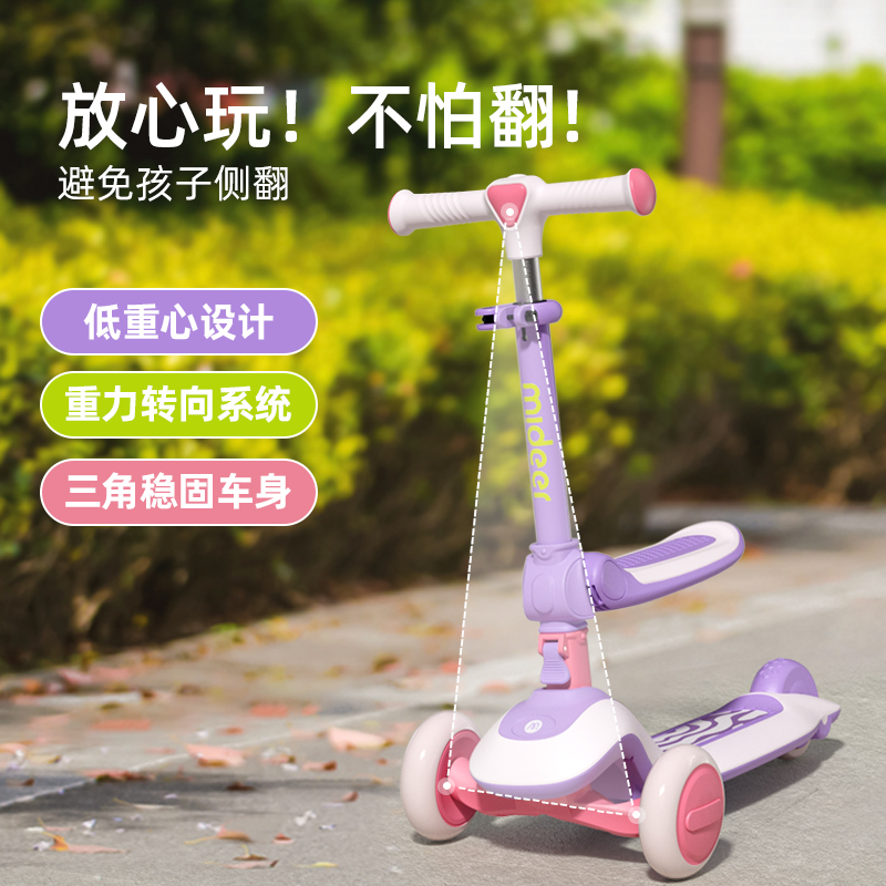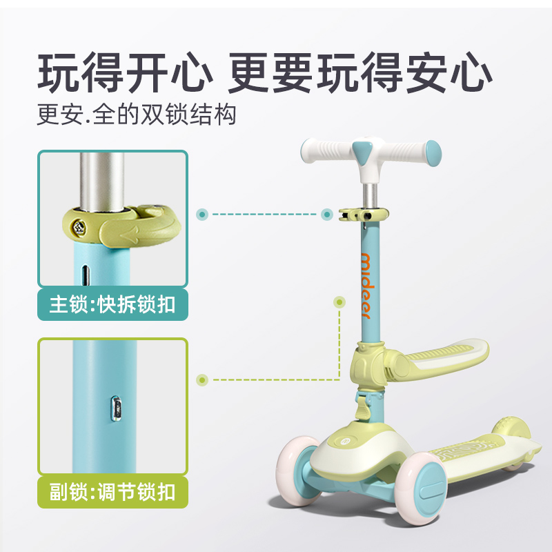 mideer Midea Deer Child Scooter 1-3-6-12-year-old two-in-one to sit on a sliding baby Fried Trolley Folding-Taobao