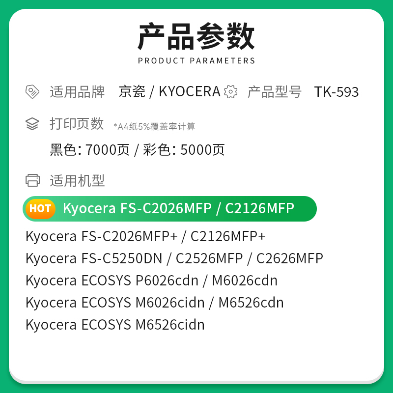 Only in application to the Kyocera TK-593 powder box C2026MFP C2126MFP C2526MFP C5250DN C5250DN P