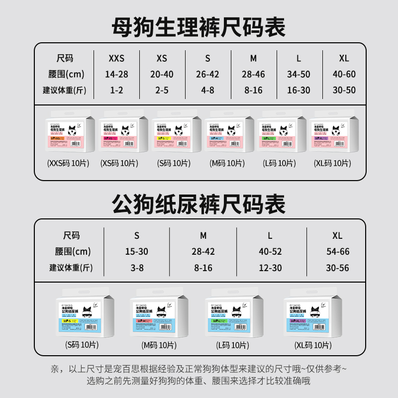 Public dog S suggests body weight (3-8 catty) waist circumference (15 -30cm) male dog M proposes body weight (8-16 catty) waist circumference (28-42cm)) male dog L recommends body weight (