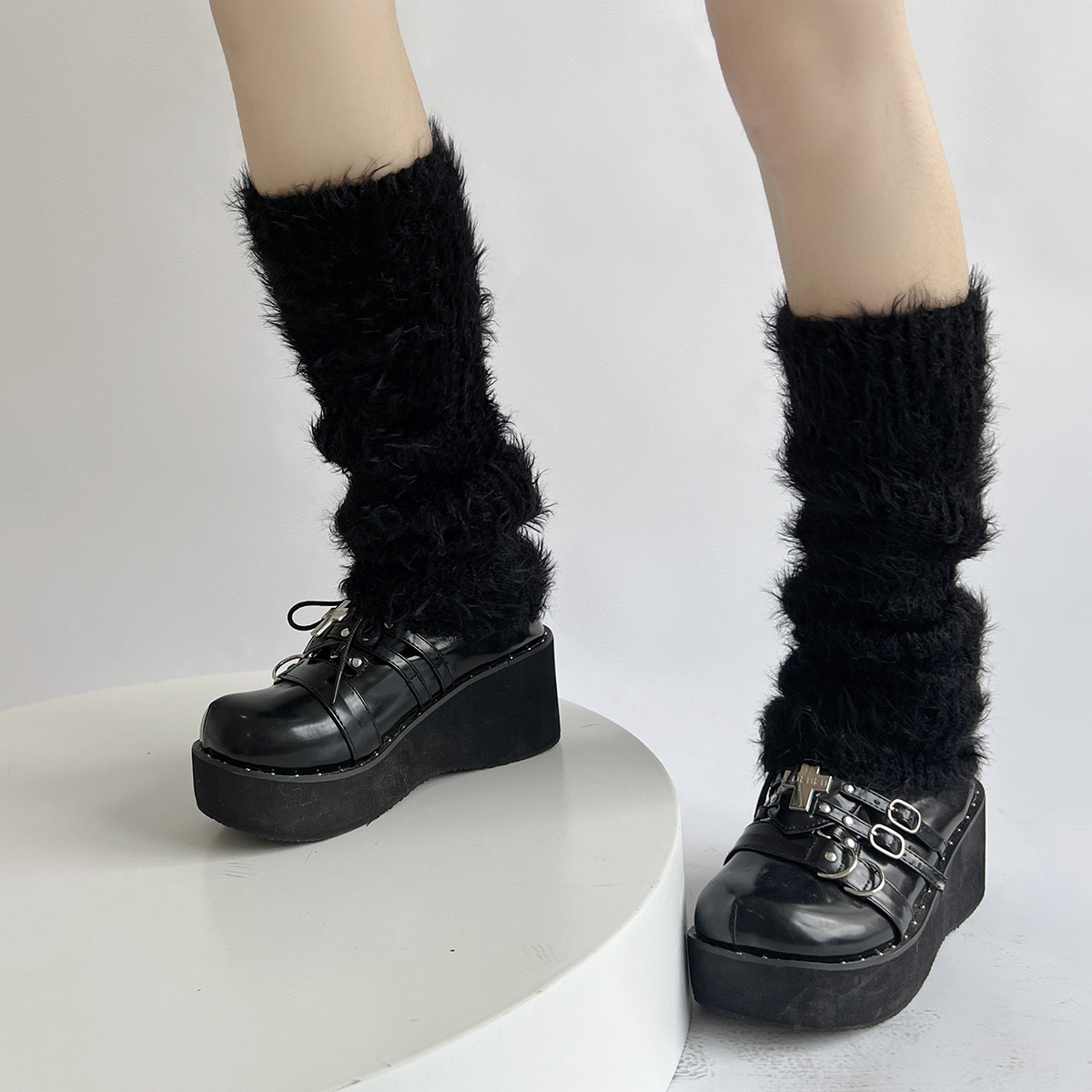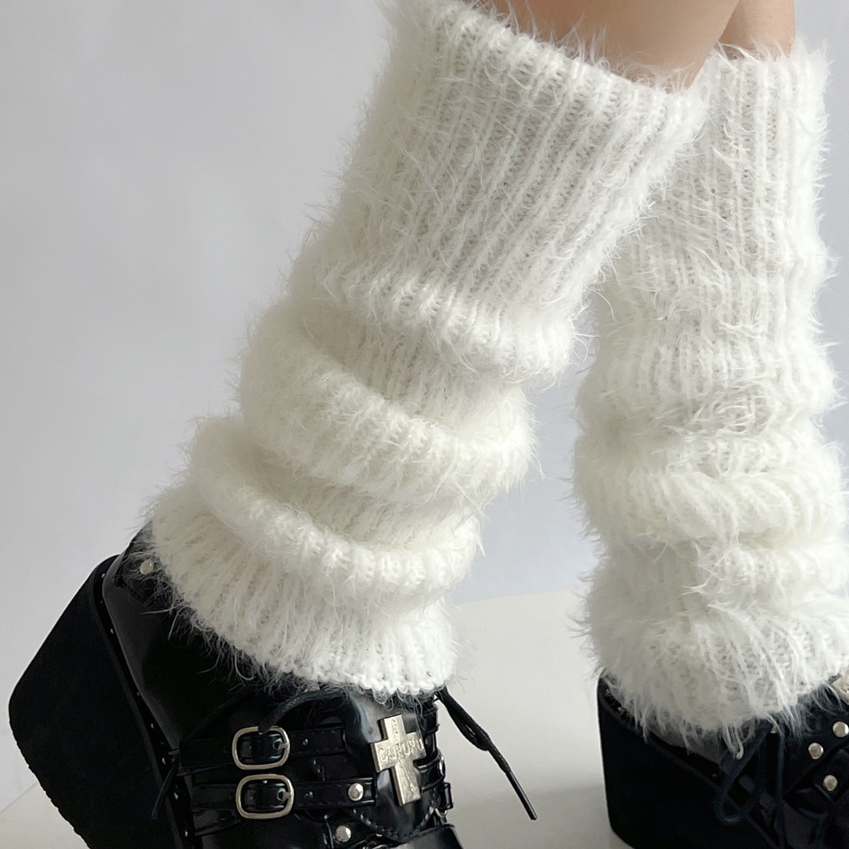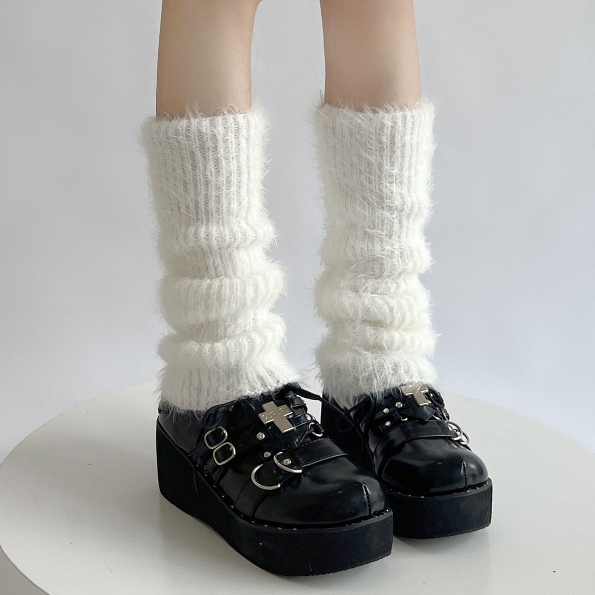 Day Ensemble Jk Plush Leg Cover Autumn Winter Style Thickened Warm Black & White Color Feather Yarn Knit Heaps Stocking Socks Condom Dual-use Gloves-Taobao