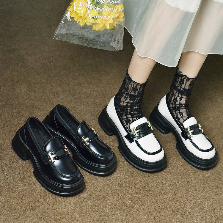 Thick Bottom Lefu Shoes Women Fall 2023 new French style Inn Wind white pine pastry retro soft bottom small leather shoes single shoes-Taobao