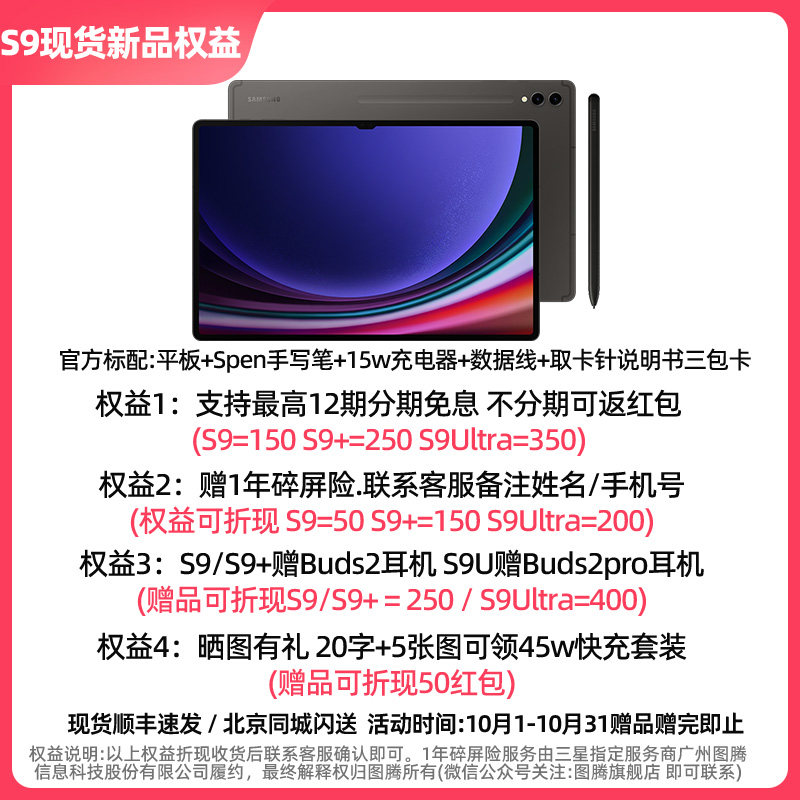 Gift Buds2 Earphone giver 1 year break screen insurance Samsung Samsung Samsung Galaxy Tab S9 tablet Intelligence 2023 new students learn online class office Samsung