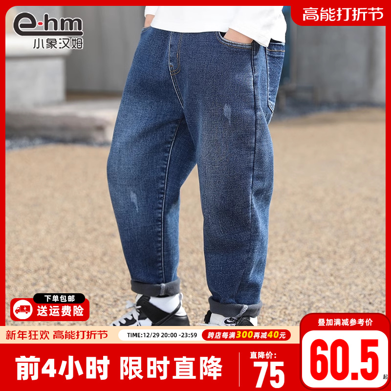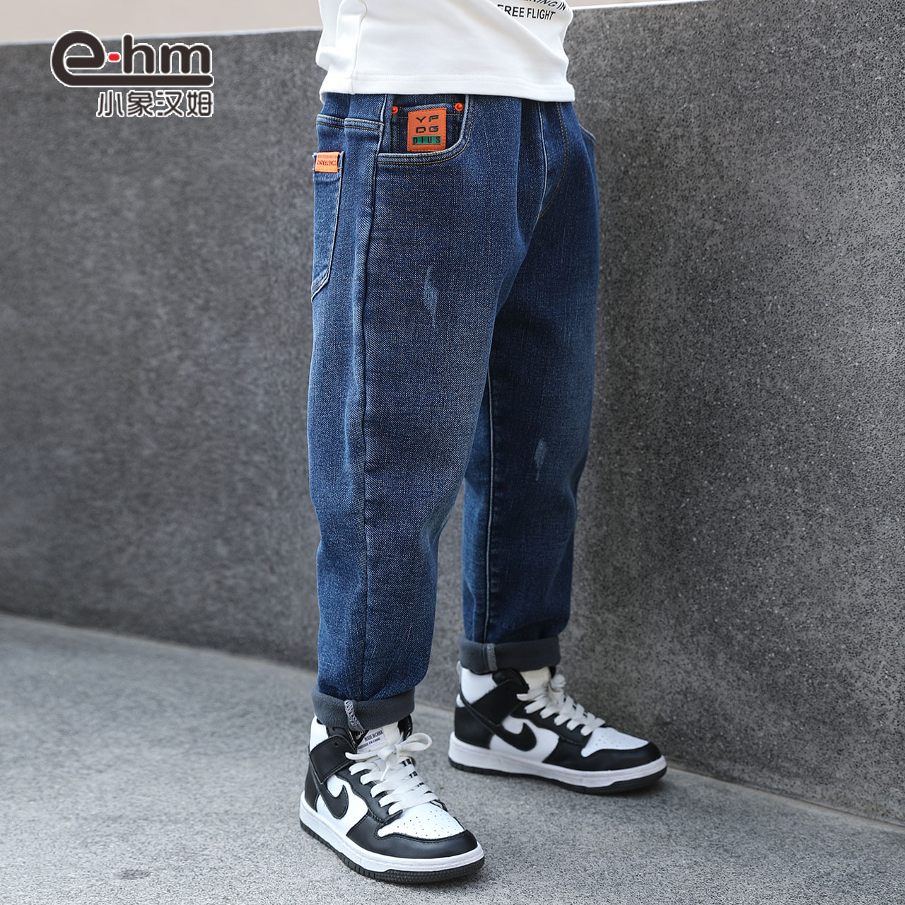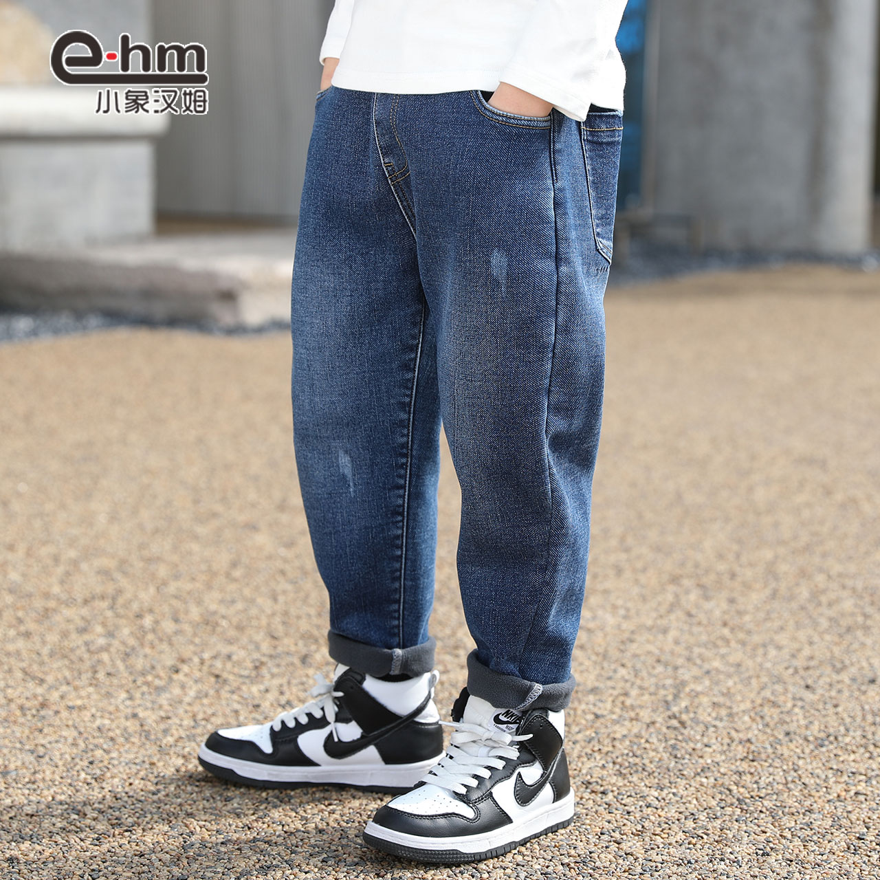 Boy Clothing Boy Gush Jeans 2023 Winter Dress New Children CUHK Child Integrated Suede Compound Long Pants Cotton Pants Tide-Taobao