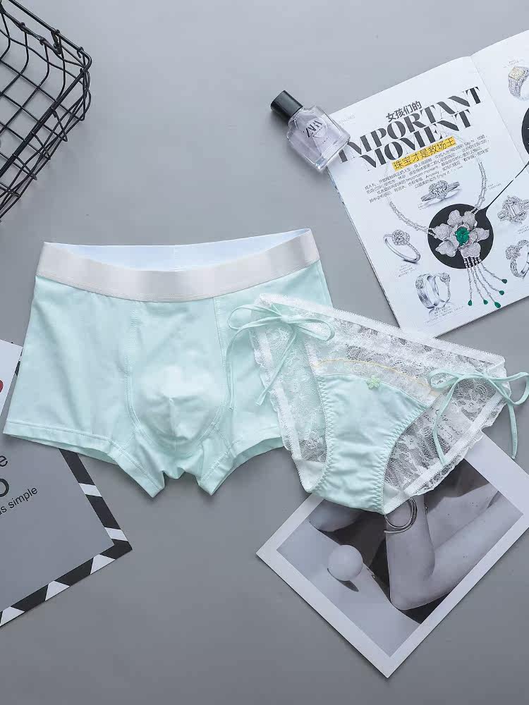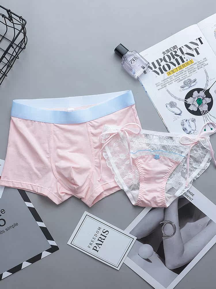 2023 new lovers briefs pure cotton one man and one woman Sexy pure desire wind strap lingerie couple double suit-Taobao