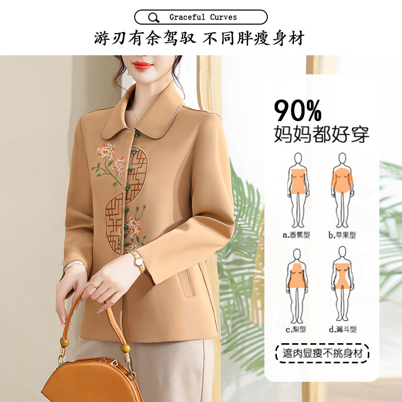 Mom Autumn Clothing Jacket China Wind Middle Aged Spring Autumn Season Jacket Wind Clothing Short Middle Age Big Code Foreign Air Blouse Women-Taobao