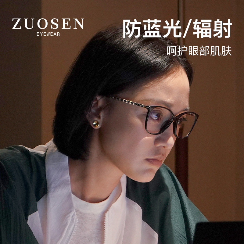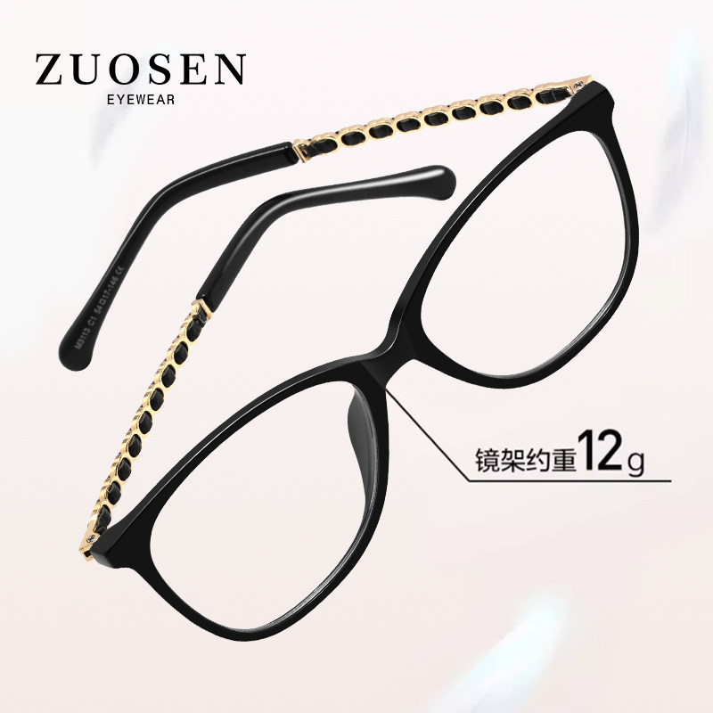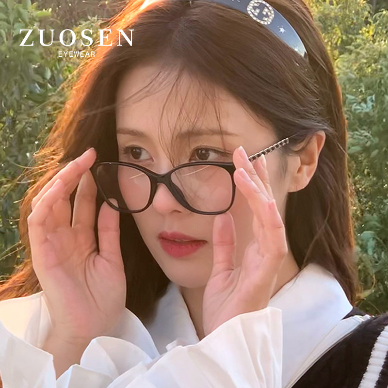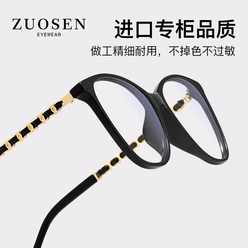 Small fragrant glasses frame black frame Cat Eye Blue Light Glasses Myopia women can be equipped with degrees ultra light tight chain frame women-Taobao