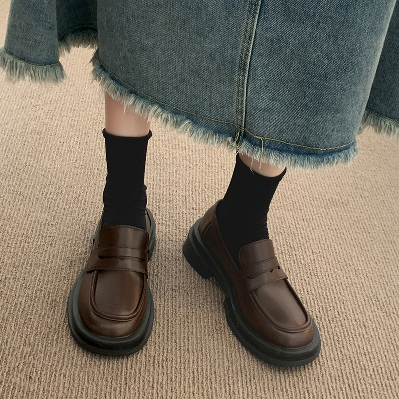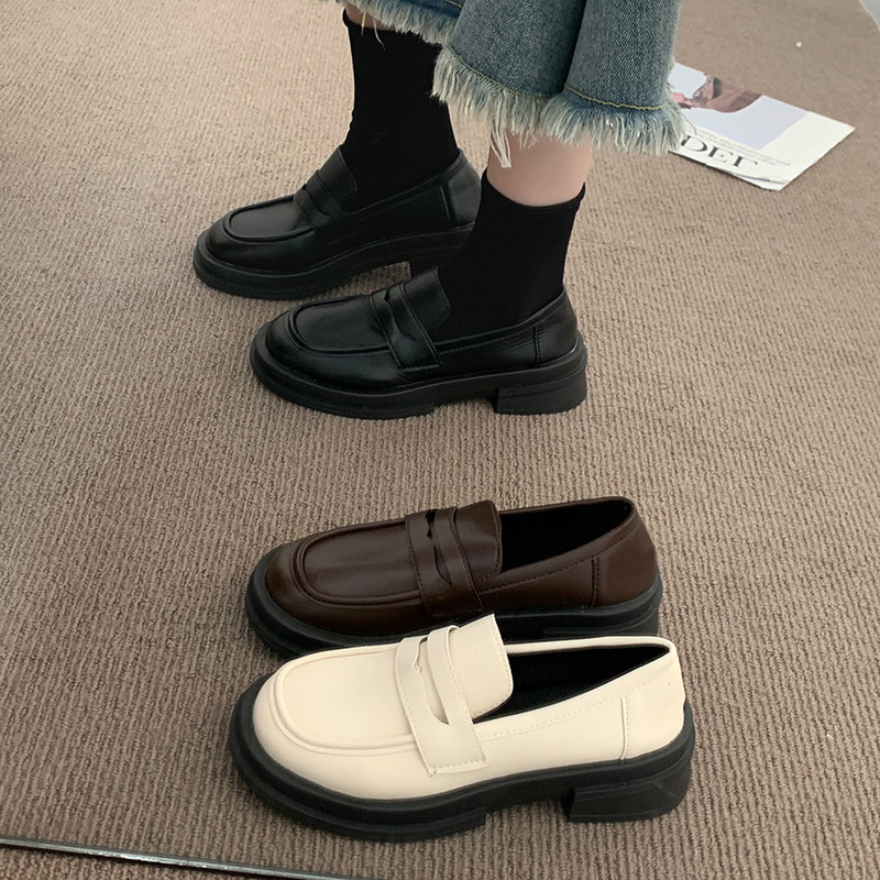 Small leather shoes Women Inn Wind 2023 new Summer Black One foot pedal Lefoe shoes Japanese Mari Jean Shoes Spring Autumn-Taobao
