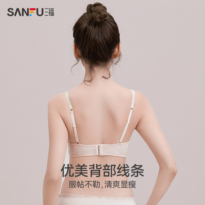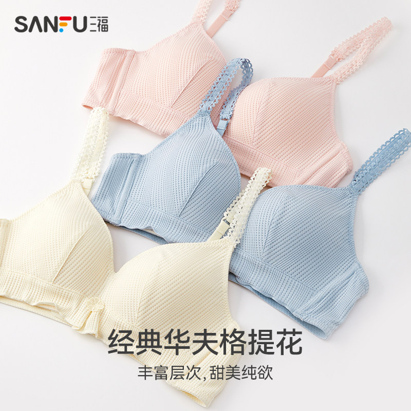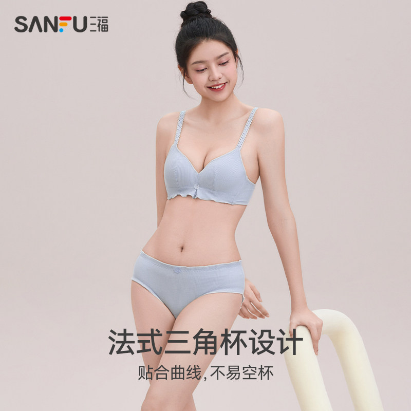 Three fu mid-thin B cup without steel ring small chest coalage with bra suit Japanese cotton sensation bra suit woman 471737