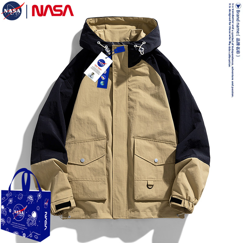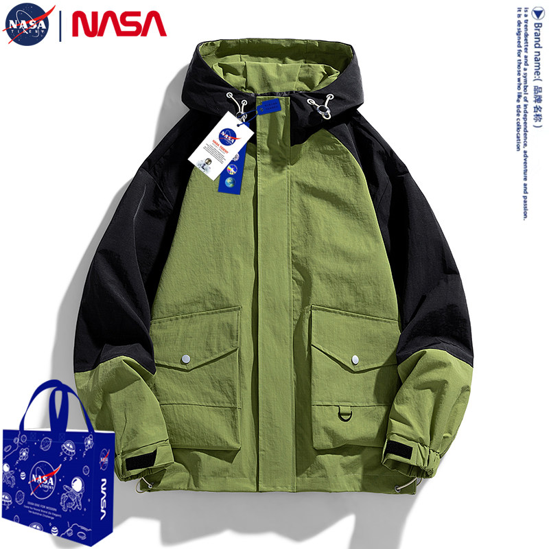 NASA joint jacket men's 2023 spring and autumn loose big code outdoor windproof splicing 100 hitch lovers even hat jacket man-Taobao