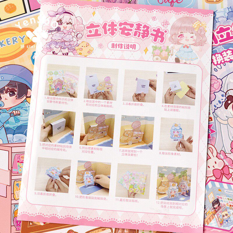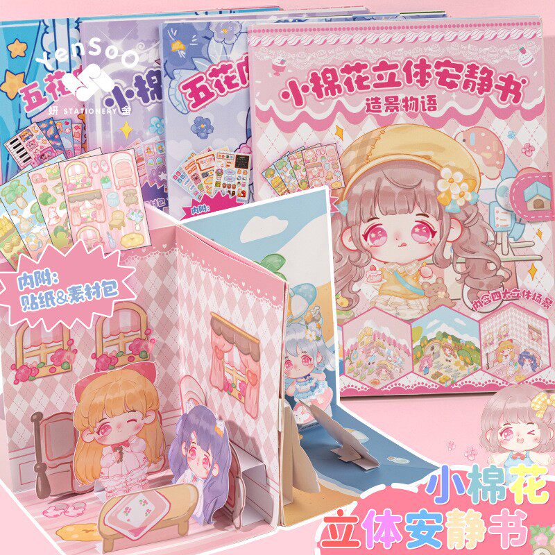 Girl Quiet Book Children Cute Katong People Things Girls Net Red High Face Value Cottage Handmade Quiet This Patch Diy Material Bag Homemade Full Three-dimensional Decompression Free Cut and Cut Game Stickers-Taobao