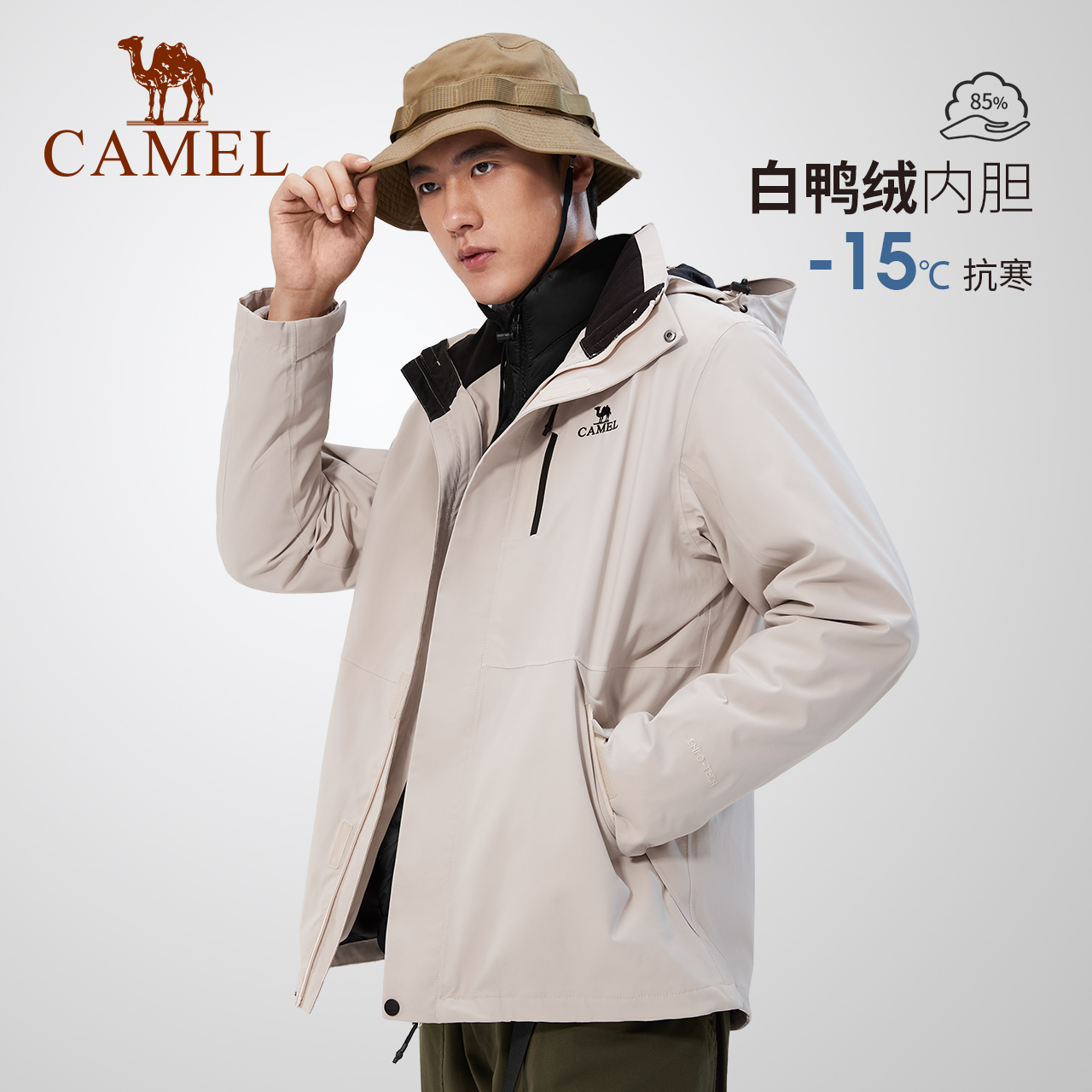 Extremely cold ski series camel three-proof down liner ski suit for men and women windproof and waterproof plus suede thickened jacket-Taobao