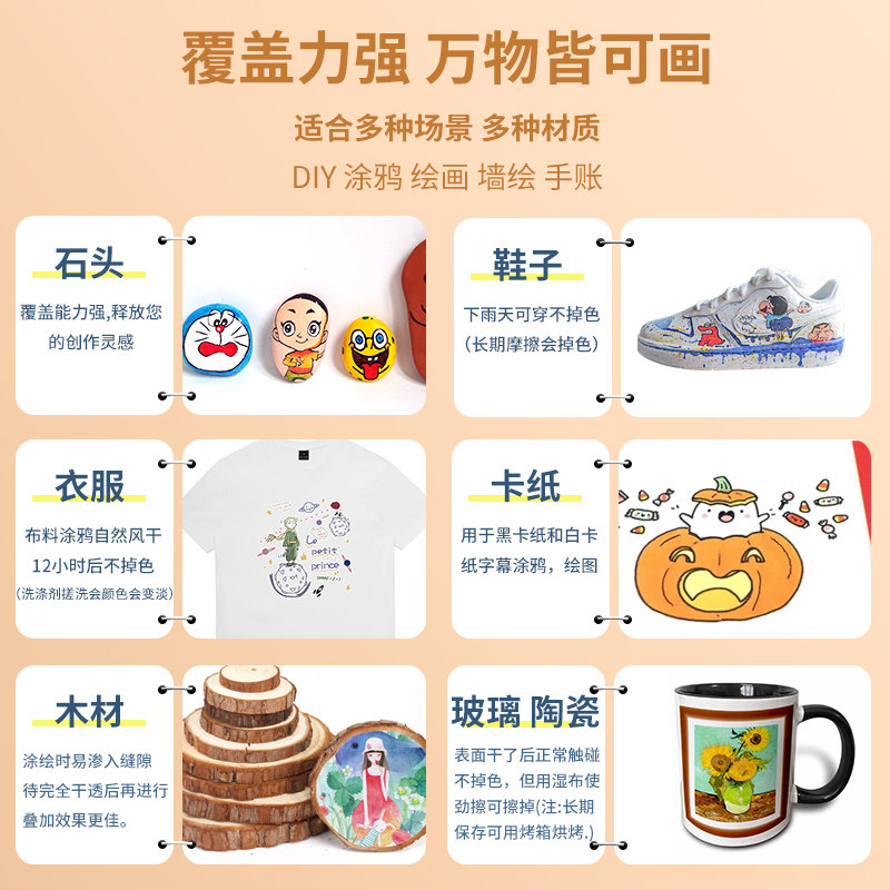 Propylene Mark Pen Impermeable paper non-toxic Waterproof Students Fine Arts Special 24 Color 48 Color Propylene Paint Not Falling color Handpainted Pink Pen Watercolor Pen Water-based Graffiti Office-Taobao