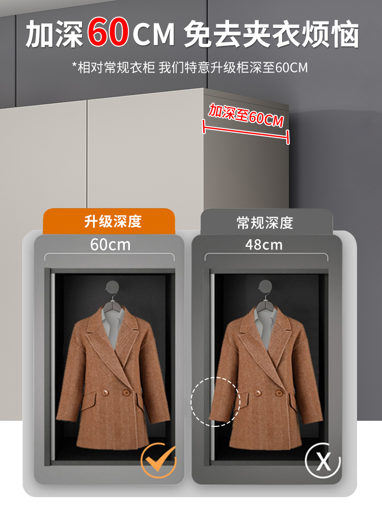 Deepen the 60cm (40 * 60 * 200) side cabinets a deepening 60cm (80 * 60 * 200) Two main cabinets deepen 60cm (120 * 60 * 20 * 20)