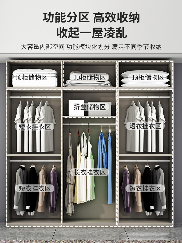 Wardrobe Home Bedroom Storage Solid Wood Master Bedroom Cupboard Small House Type Rental House Simple Storage Closet Customizable-Taobao