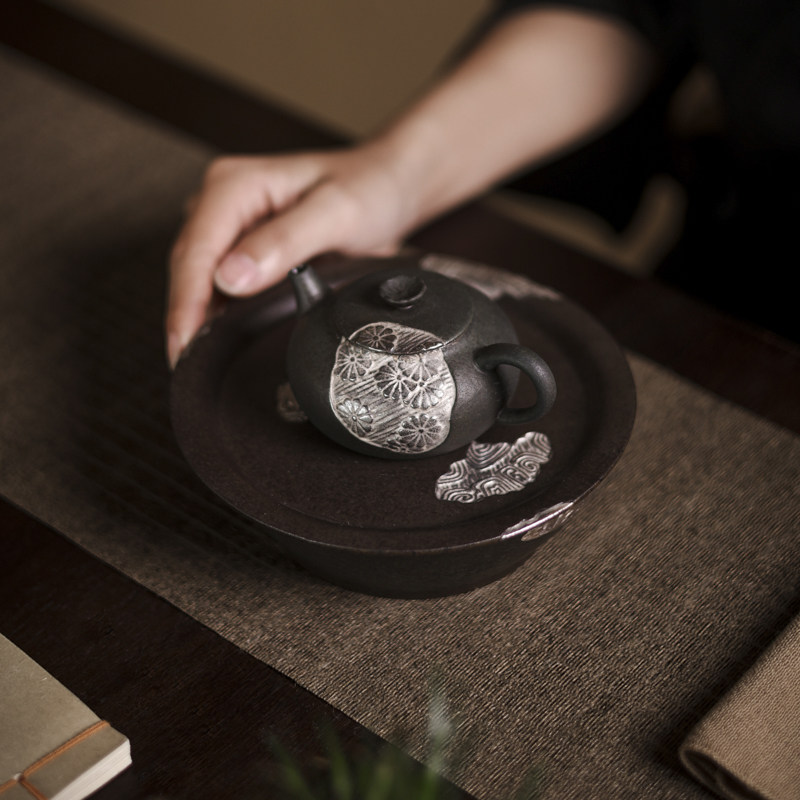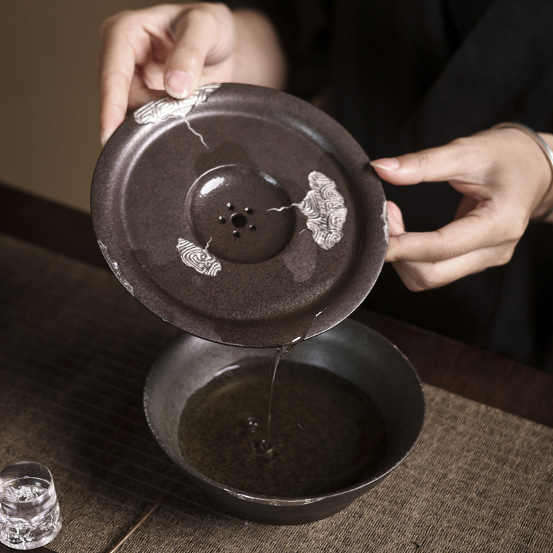 (Grey hanqing glaze RMBthree jug bearing) Ceramic dry foam table Retro pot Todaystyle tray tea tea Tea-Taobao-Taobao