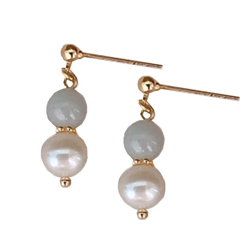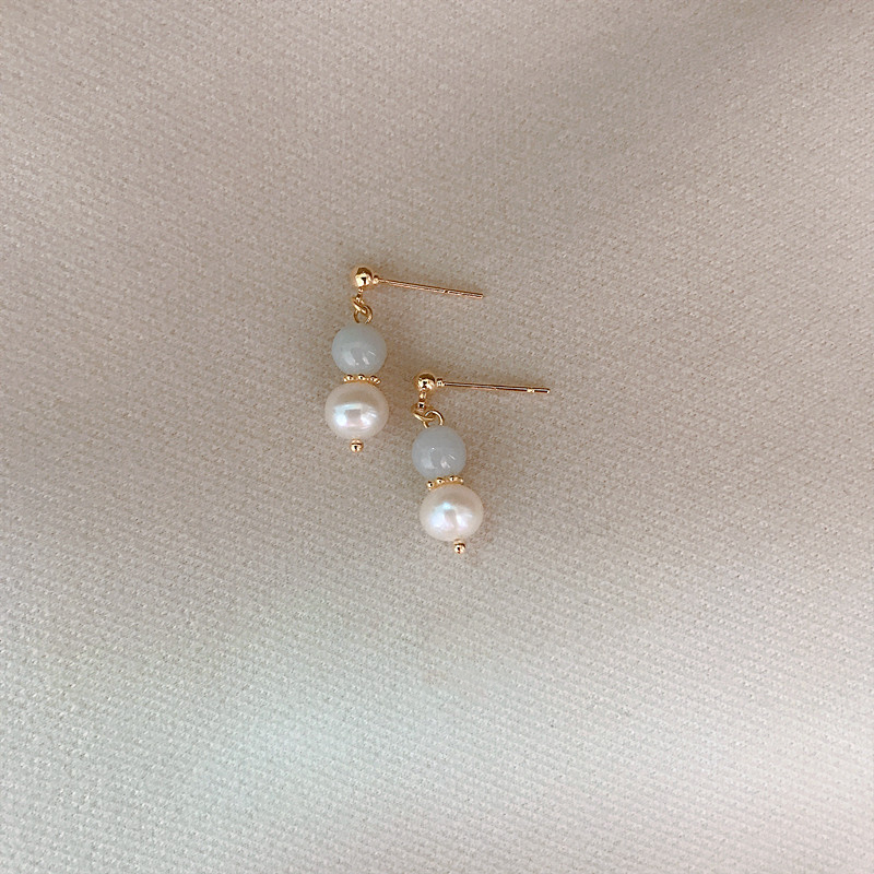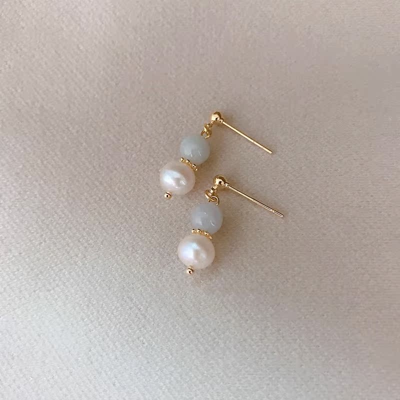 CHUQIACC "designer" warm retro natural emerald earrings small and elegant freshwater pearl earrings-Taobao