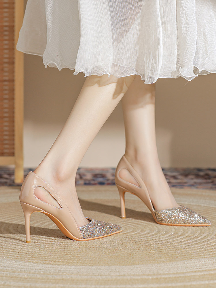Water Drill Pointed Single Shoe 2023 Spring Autumn 100 Hitch New Method Crystal Advanced Sensual High Heels Heels with Wedding Shoes-Taobao