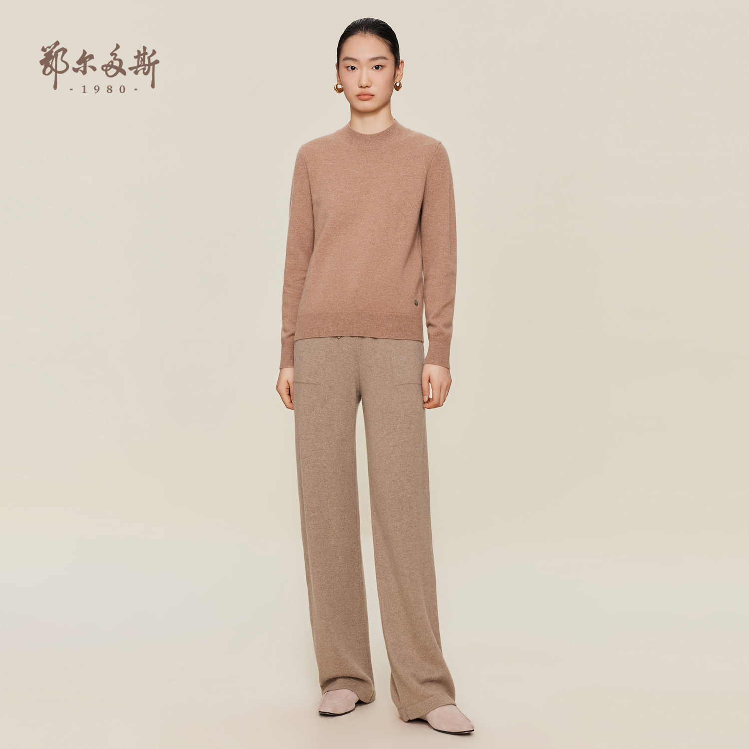 Ordos 1980 women's pure cashmere straight drum pants 23 early autumn new minima commute thick knitted casual pants-Taobao