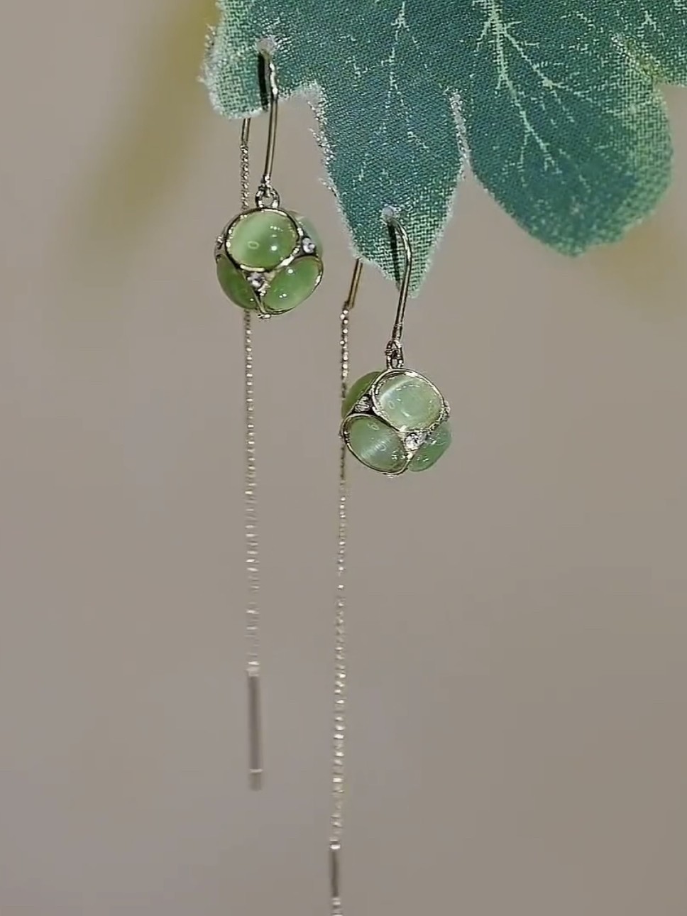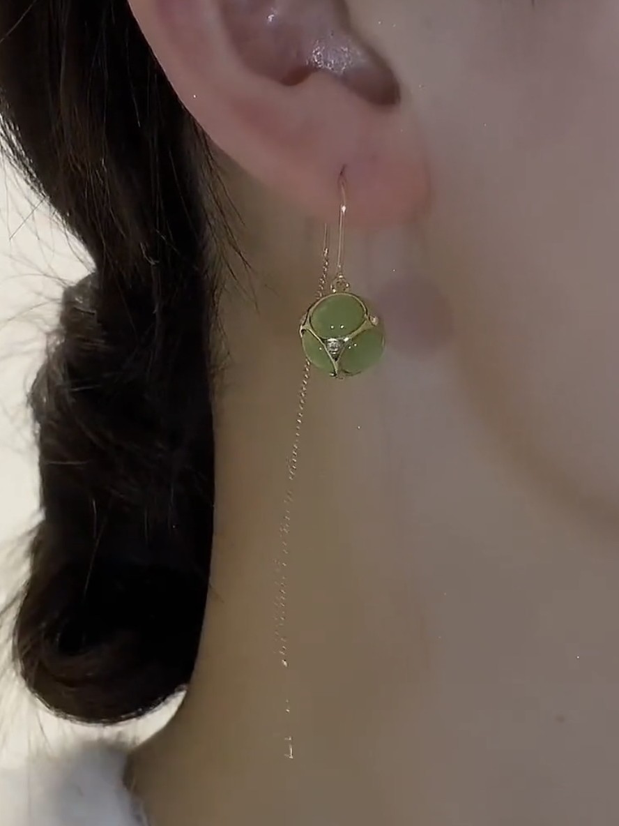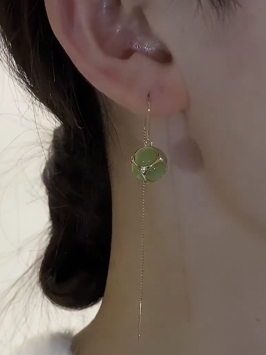 Korean Cat Eye Stone Art Fresh Pure Silver Flowers Embroidered Ball Earrings Female Gufeng Performance 100 Lapped Light Extravagant Earrings-Taobao