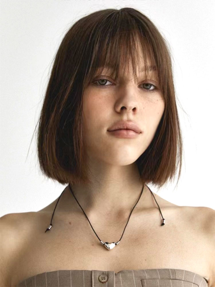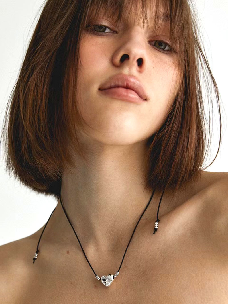 Kim Tae-yeon's same length Knitted Rope Peach Heart Loving Pendant Silver Necklace 2023 New Temperament Neck Chain Lock Bone Chain-Taobao