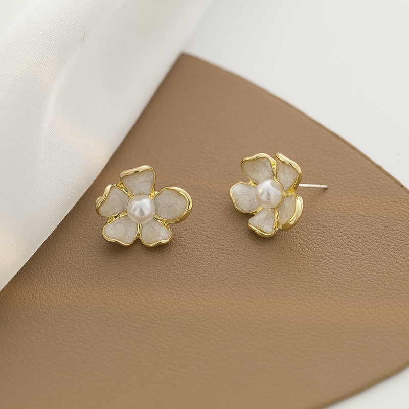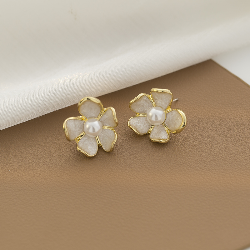 Minimalist Temperament Fashion 100 Hitch Ocean Pearl Flowers Earrings Woman's small crowdsourced design Mosquito Repellent Coil without ear clip-Taobao