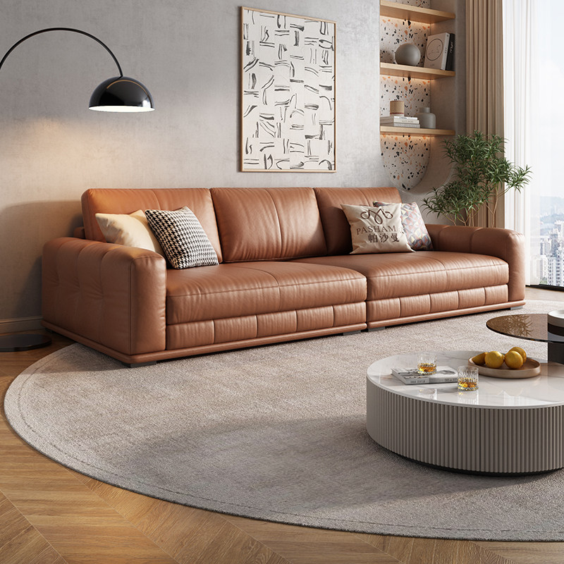Paschaman Real Leather Sofa Head Layer Cow Leather Small Family Type Living Room Willy-style Extremely Minimalist Modern Straight Row Trio Black-Taobao