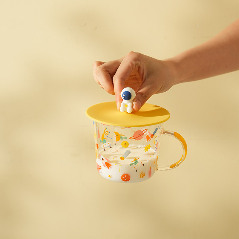 Hot selling two green thickened cups cover-yellow rocking horse yellow thickened cup lid-white blue face astronaut orange biking cup lid-little girl yellow biking cup lid-Cora blue bisected cup
