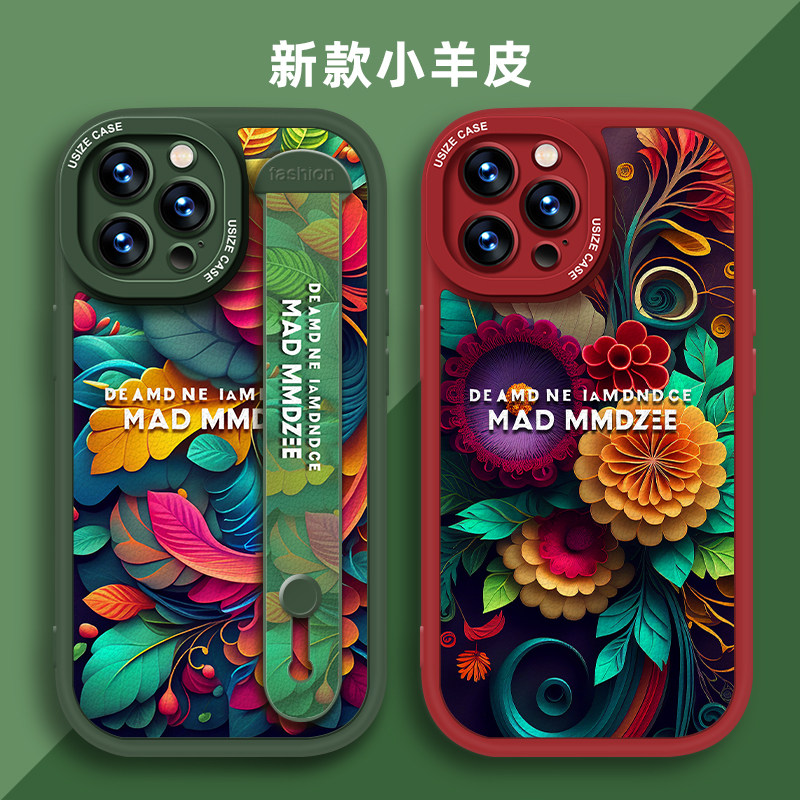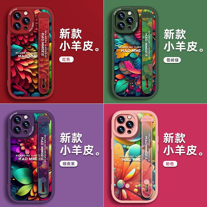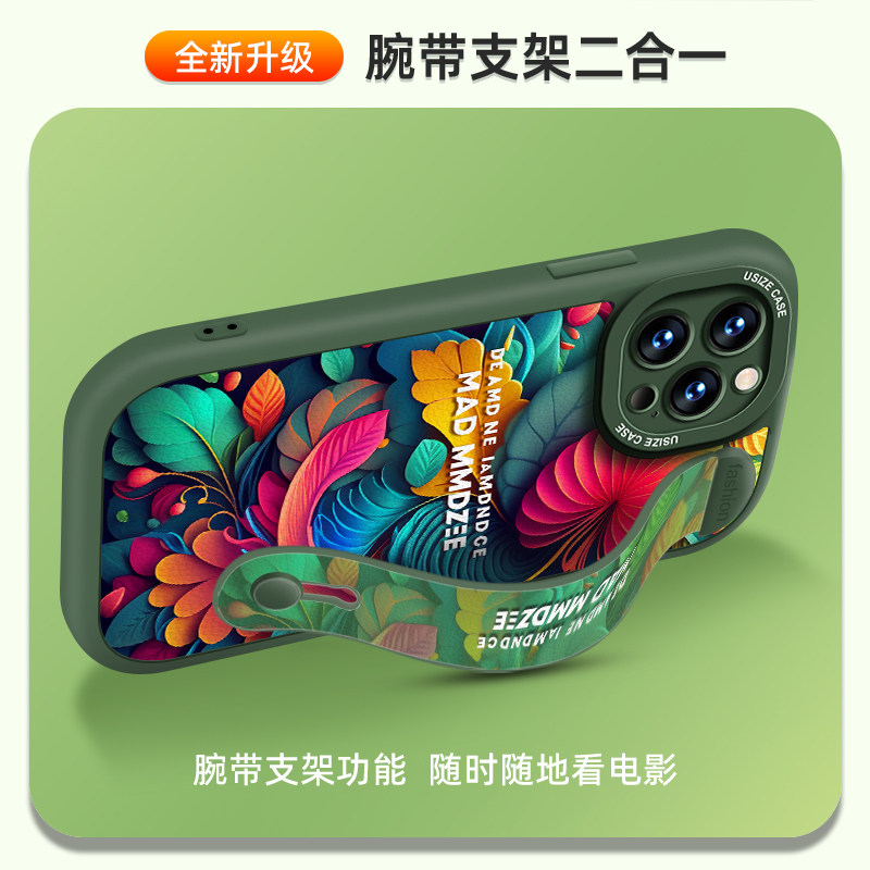 Beauty wave applies Apple 15promax mobile phone shell 13 soft shell art silicone iPhone14 lens full package protective sleeve 11 high-grade wrist wristband 12 mesh red blasting small crowdwind small