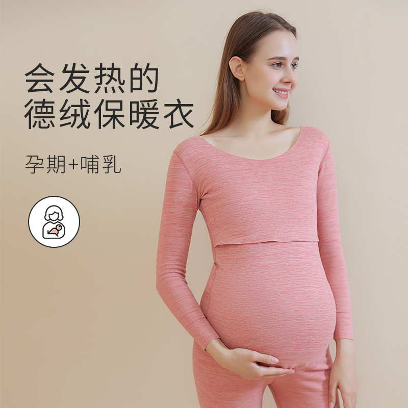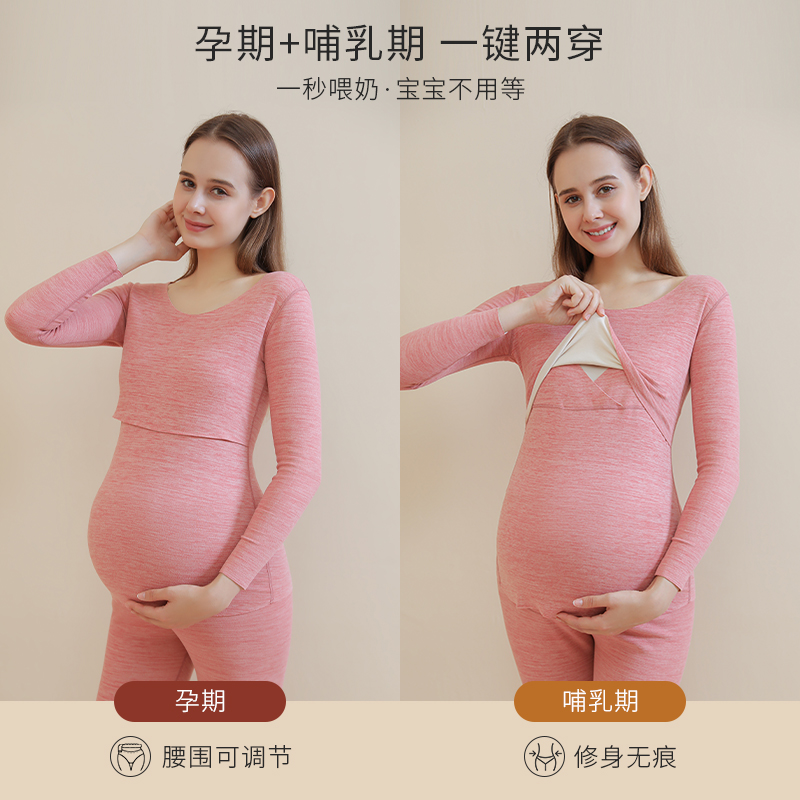 Pregnant Woman Autumn Clothes Autumn Pants Suit Autumn Winter Dush Warm Underwear Pregnancy Postnatal Breastfeeding Period Sleeping clothes for a large size-Taobao