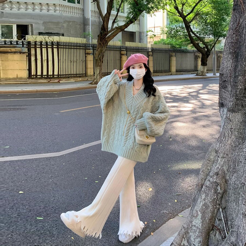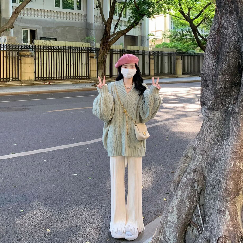 Green Sweater White Pregnant Woman Pants Sweater White Pregnant Woman Pants Suit