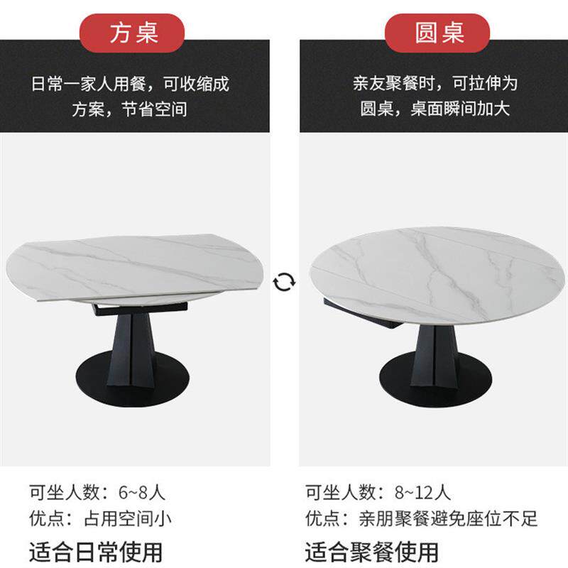 Italian style rock plate dining table and chairs combined telescopic swivel round table Home Small family type square-round dual purpose multi-dinner table function-Taobao