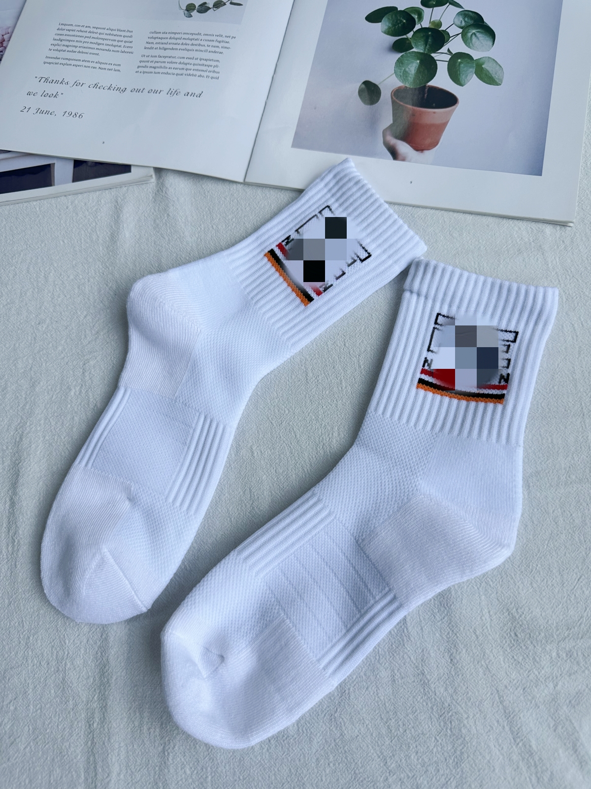 White (no to no refund) socks with a single shot no.