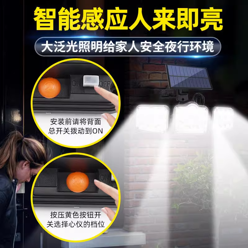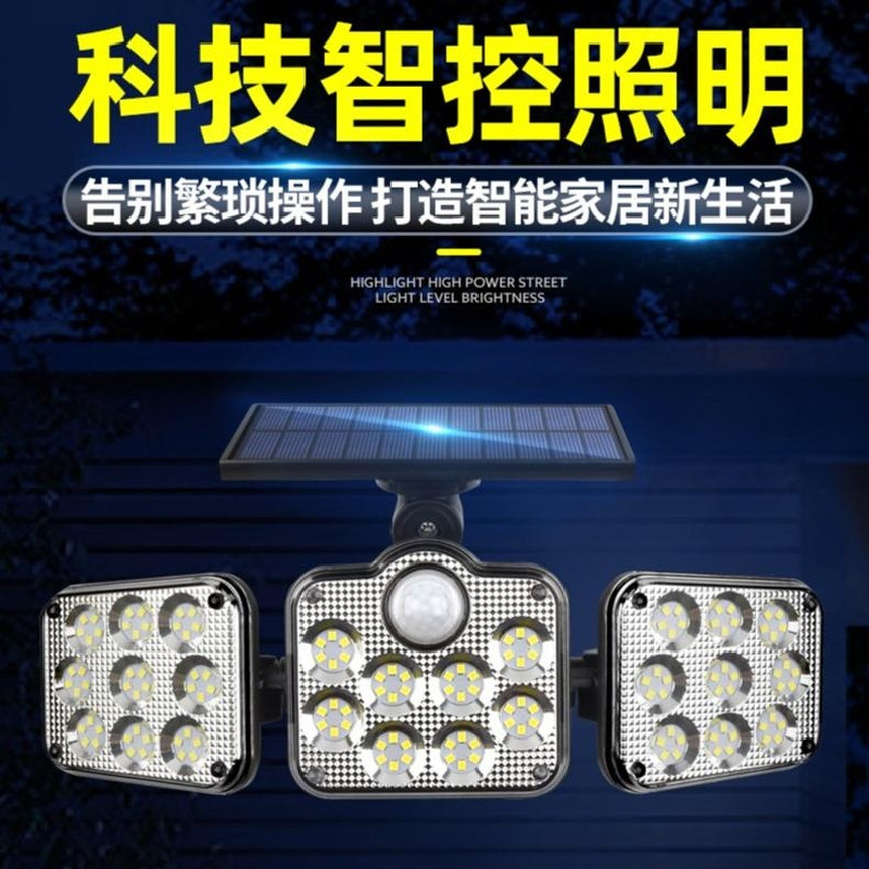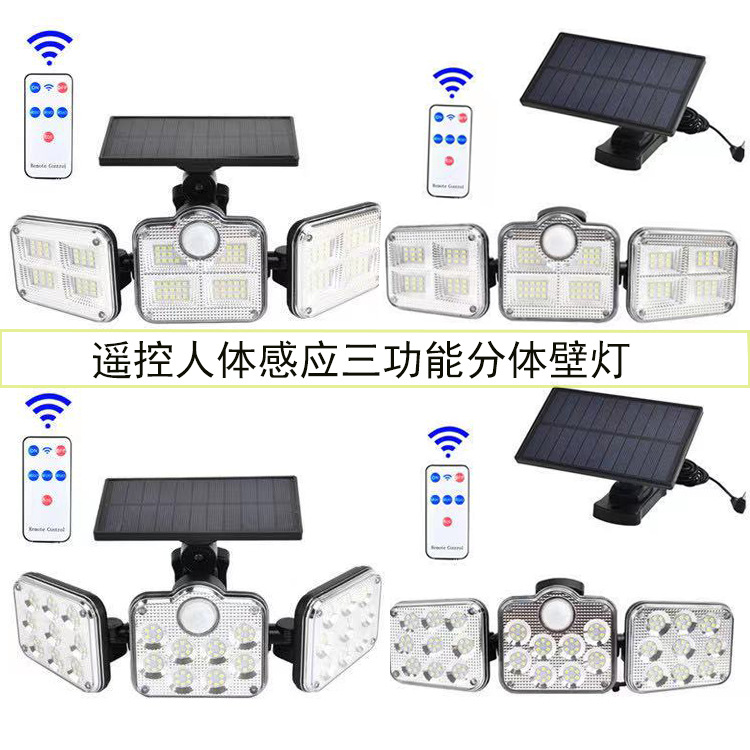 New three-head LED solar wall lamp Split Solar Courtyard Lamp Outdoor smart body inductive light-Taobao