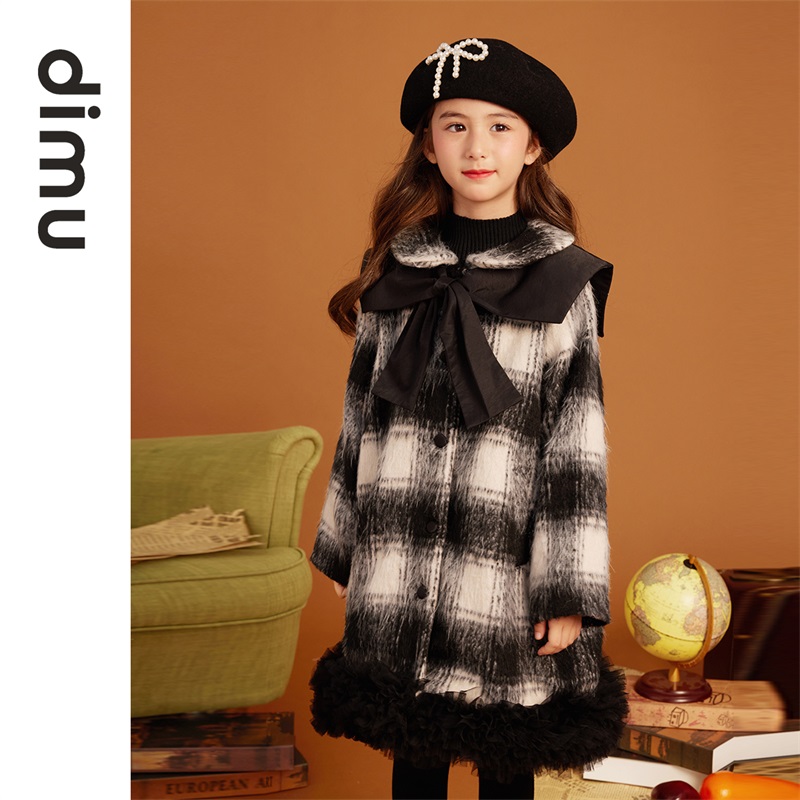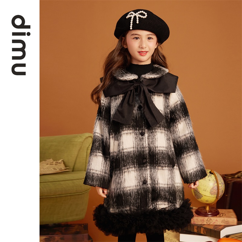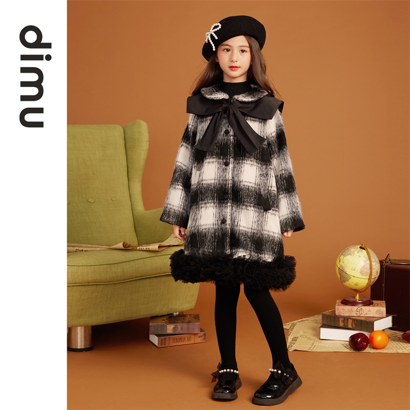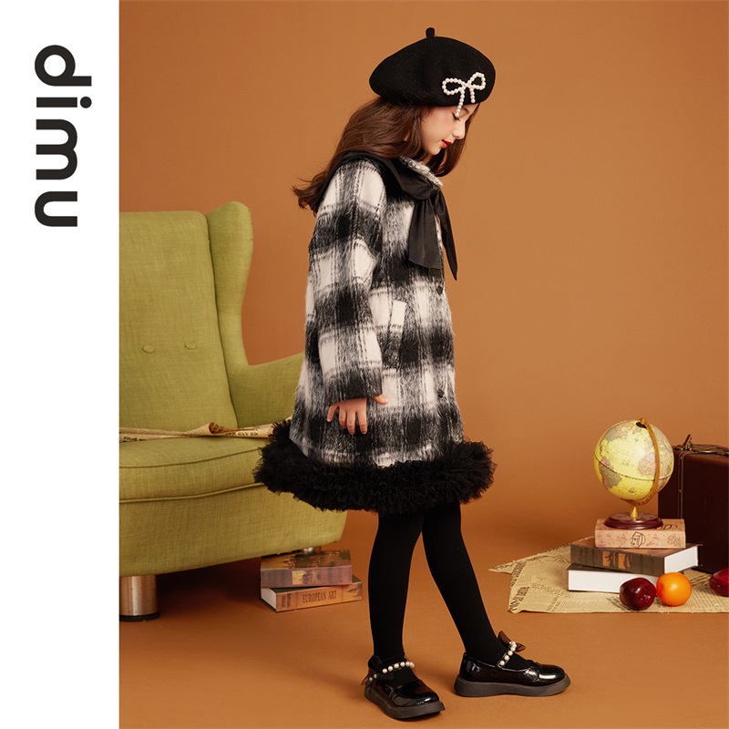 The flute pastoral girl's great coat 2023 winter dress new trendy lattice thickened warm children with a long fur coat-Taobao