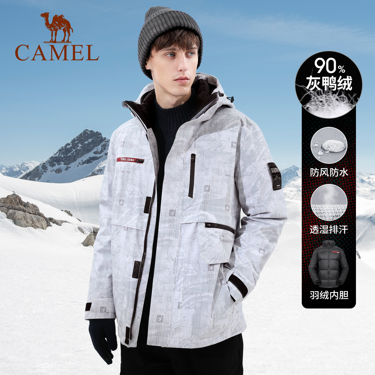 Extremely cold ski series camel superimposed state ski jersey men's three-in-one down liner waterproof climbing jacket woman-Taobao
