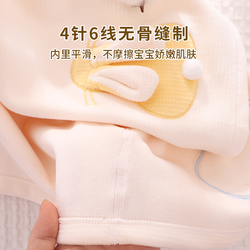 Newborn Baby Gushed Warm Underwear Suit Autumn Winter 6 Months Open Crotch Split Thickened Baby Bifacial Suede Suit-Taobao