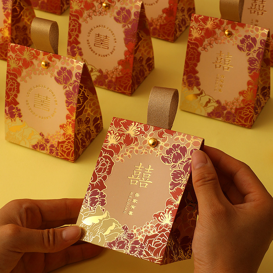 2023 Wedding Happy Sugar Box Hand Sweets Bag Wedding Back Gift Exclusive Candy Packaging Empty Box Advanced Sensation-Taobao