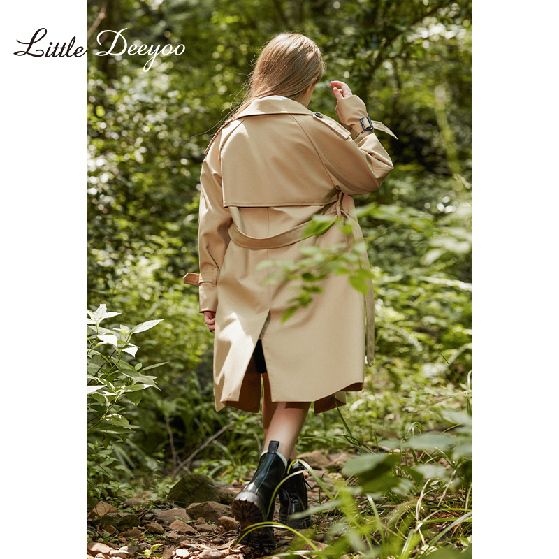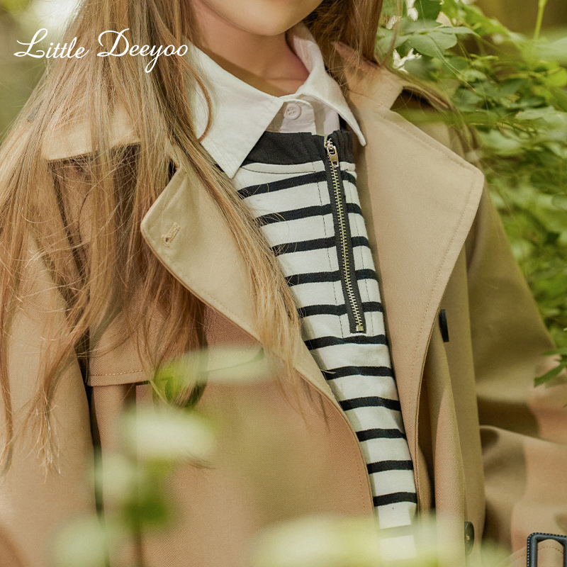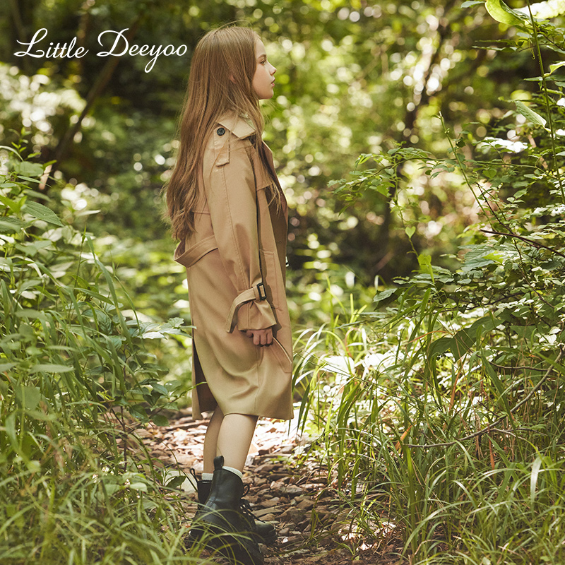 Girl double-row button wind clothes in long style 2023 spring autumn new CUHK child Inron wind and autumn clothing jacket-Taobao