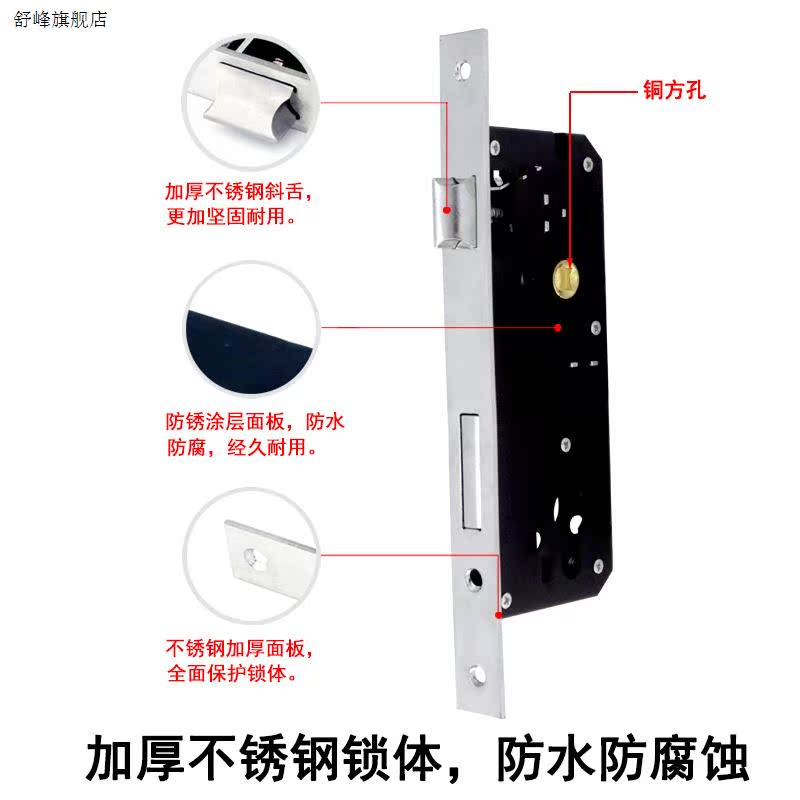 New paragraph square hole old thickened stainless steel lock body long light spring linkage whole set of wood door room door lock-Taobao