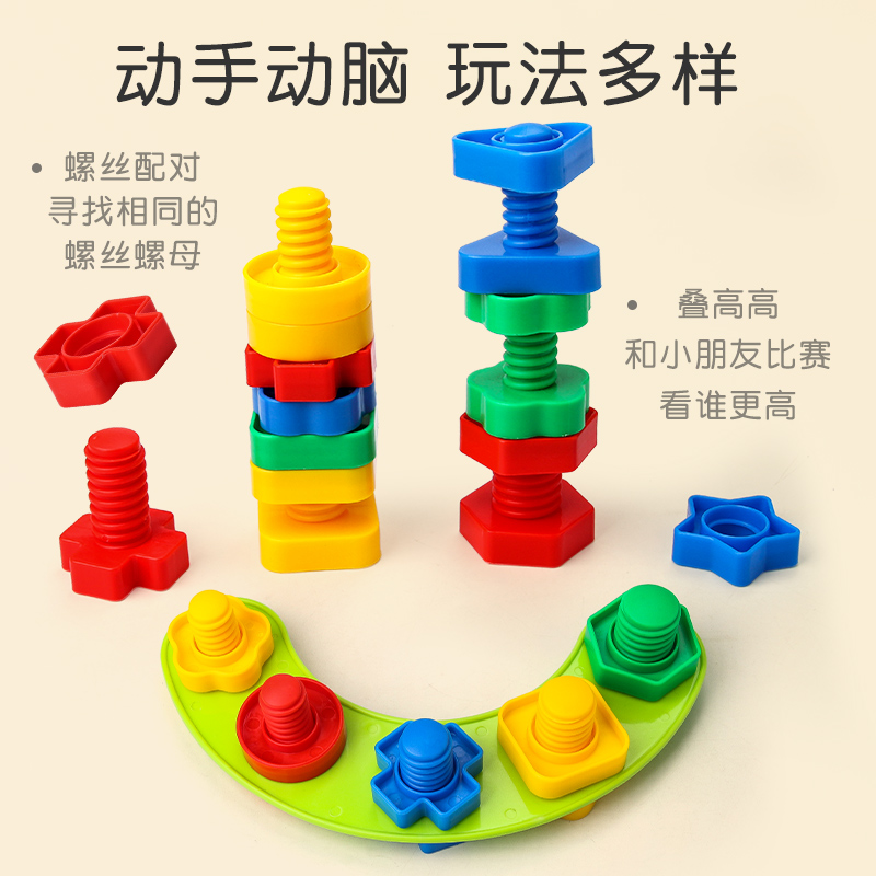 Children's screw building blocks assembled puzzle toy kindergarten baby big grain screw-in nut to dismantle 2-3-year-old puzzle-Taobao