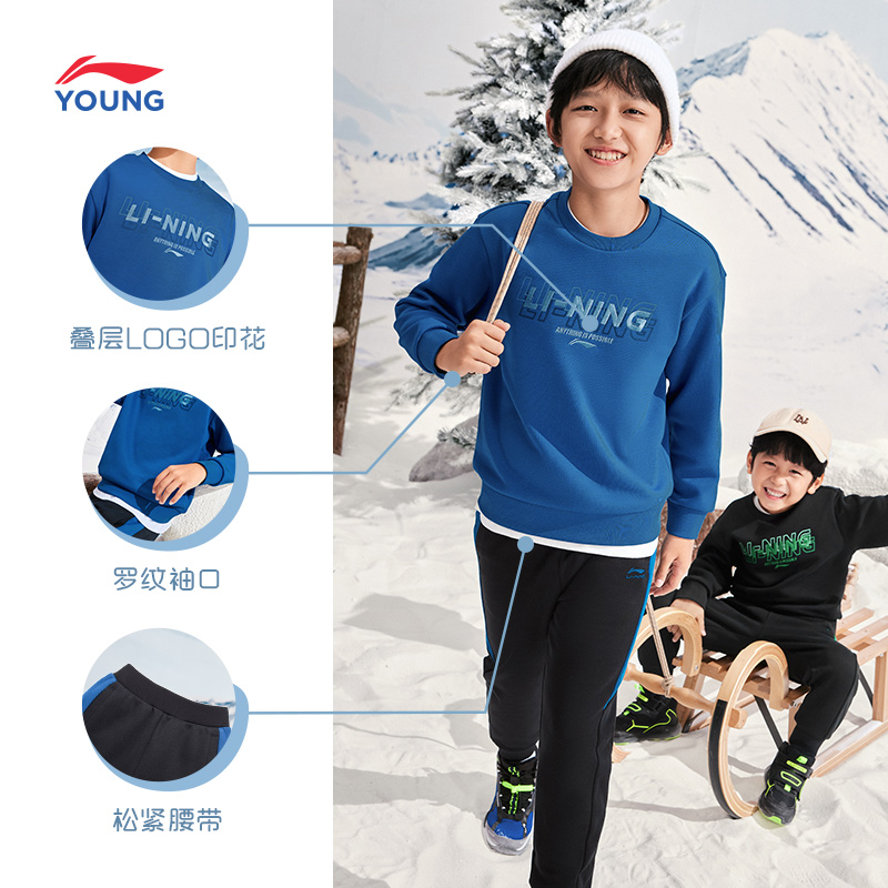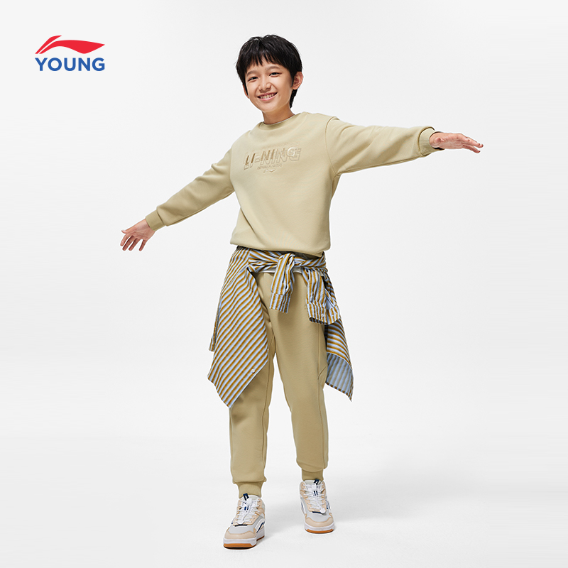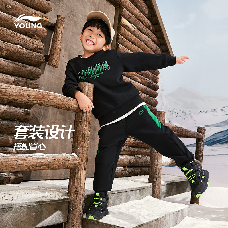 Li Ning child male and female Little Big Boy 2023 new sports life series headsets Cavet clothing and sweatpants sports suit-Taobao