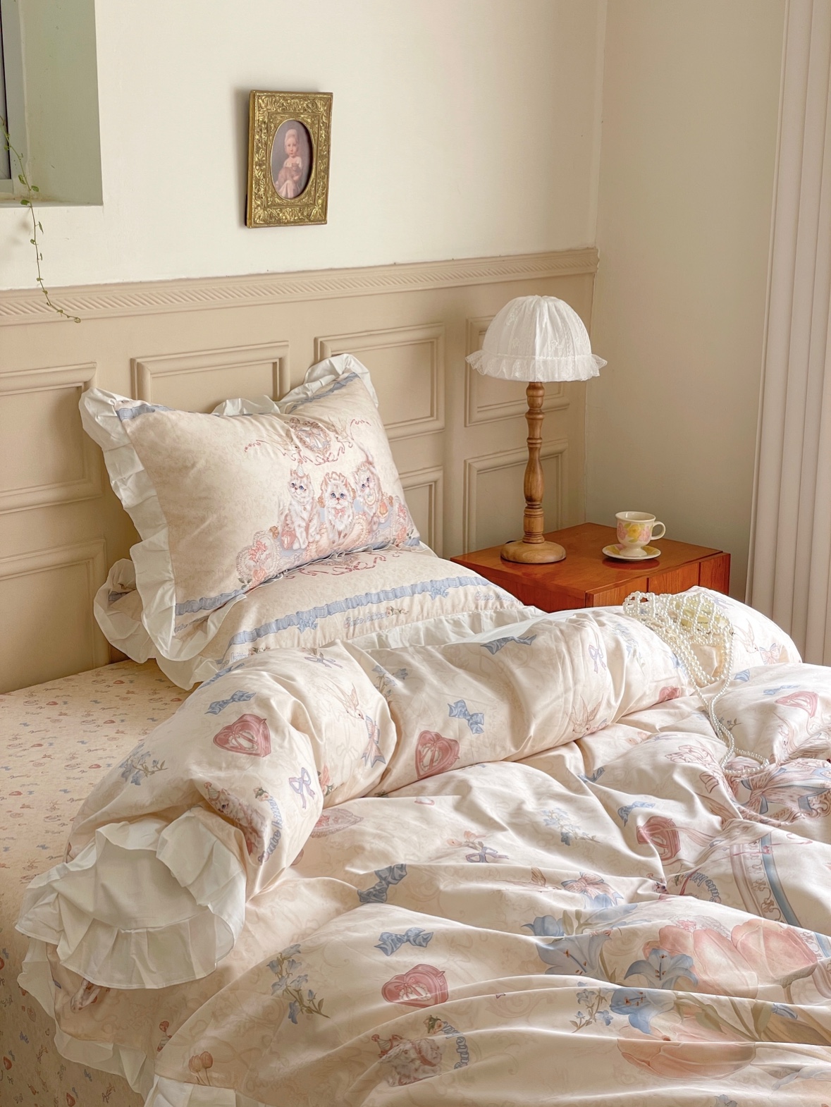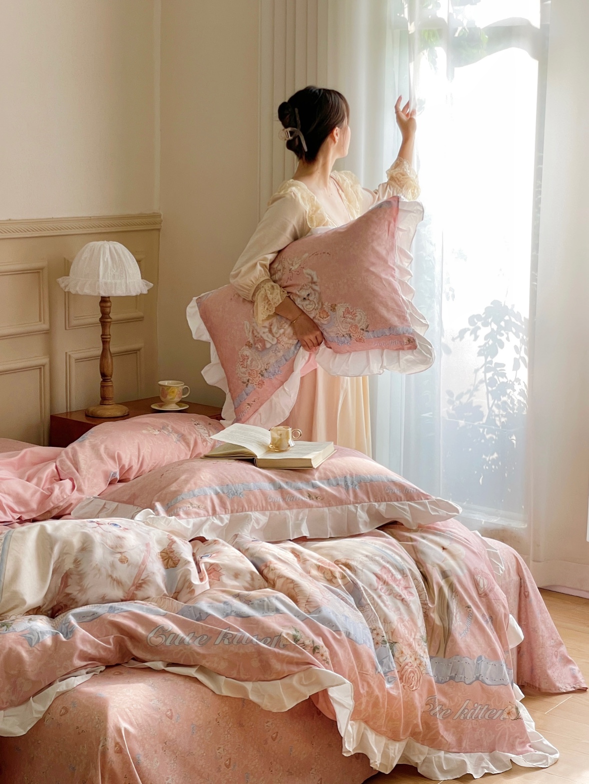 (Spot) Kitten Sleeping Song 60 Pure Cotton Goon Satin Four Pieces-Taobao