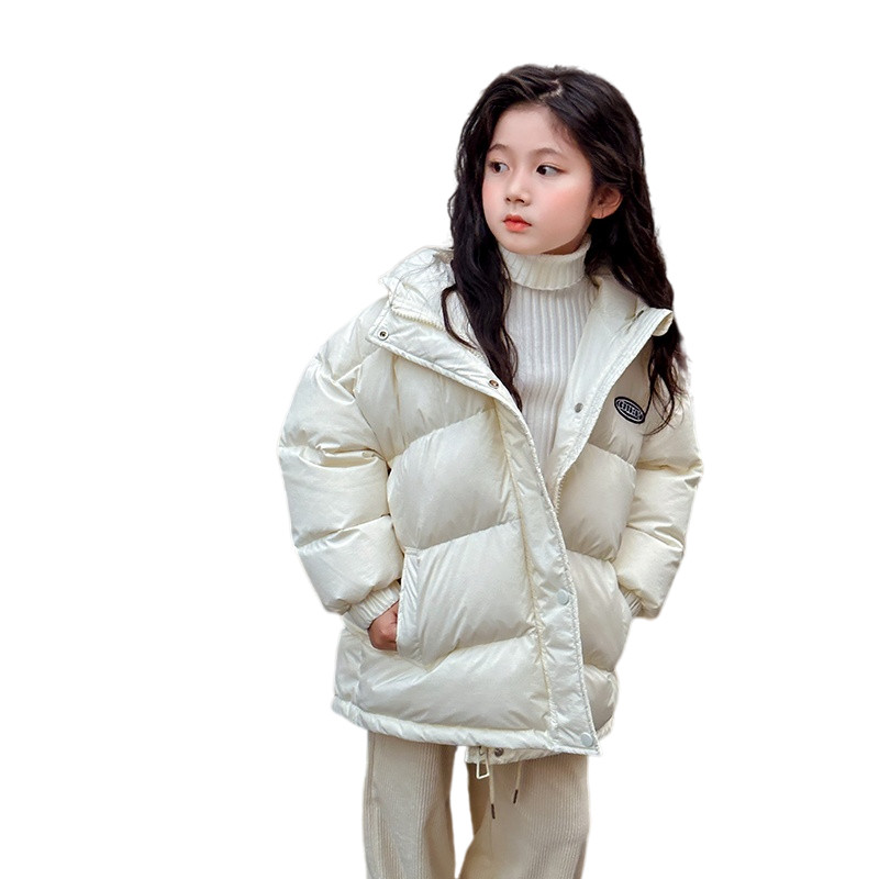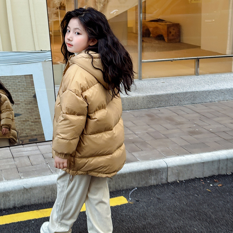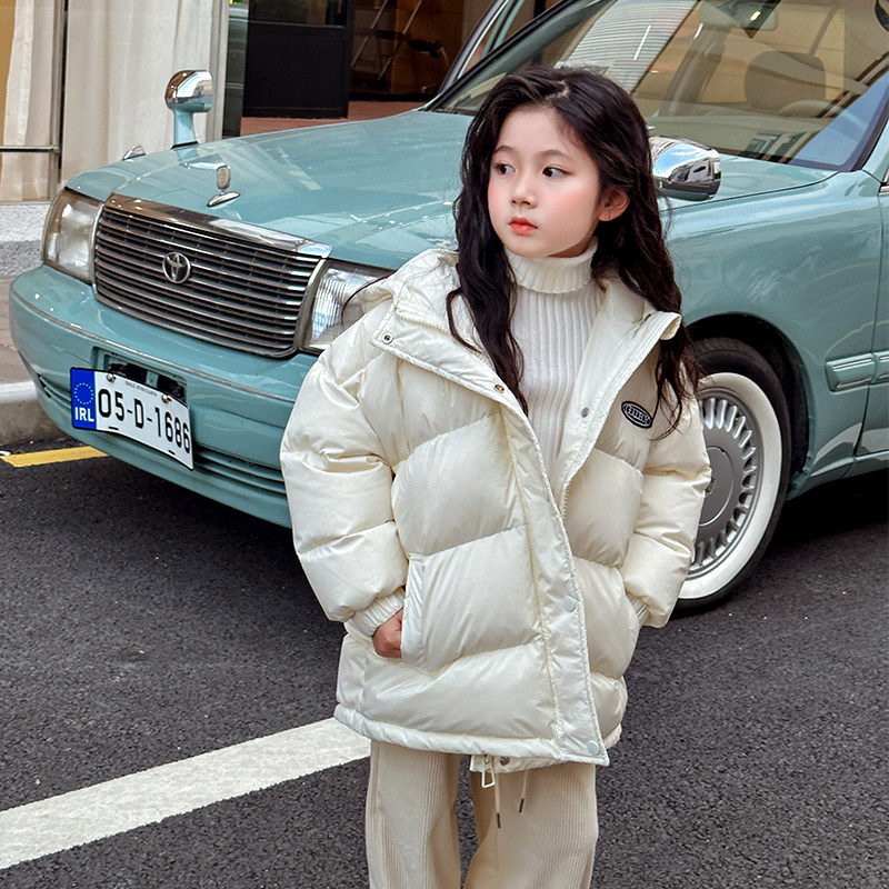 Children's down clothes Winter short paragraph 90 white duck suede girl jacket DuPont three anti-thickening warm even hat boy-Taobao