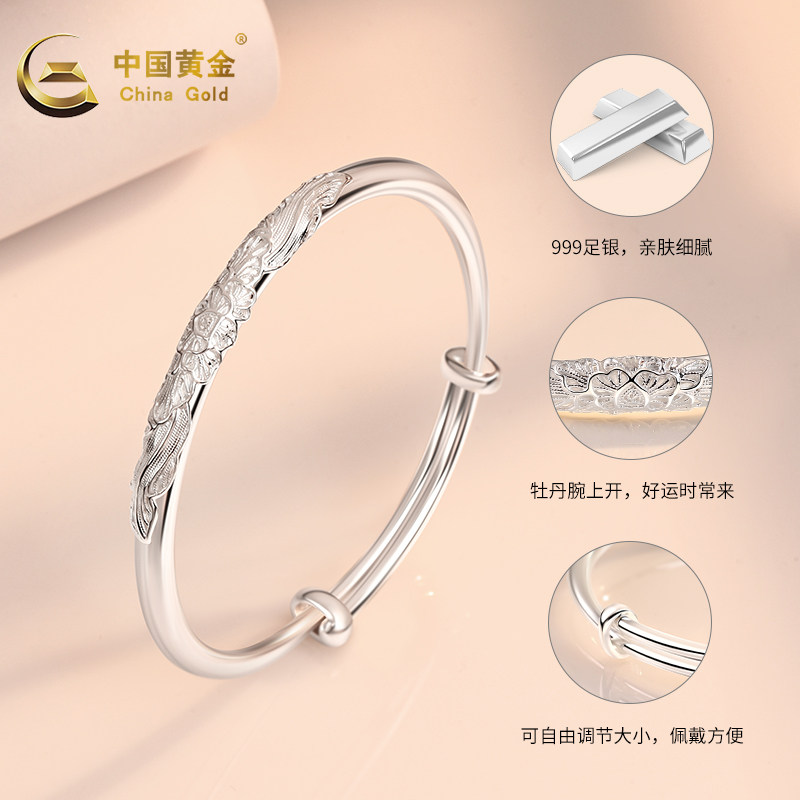Foot Silver Peony Flower Silk Bracelet about 20g (gift in gift box random) foot silver Mudan flowers silk bracelet for about 25g (gift with gold gift box random) foot silver Mudan flowers silk bracelet for about 30g (gift in gold